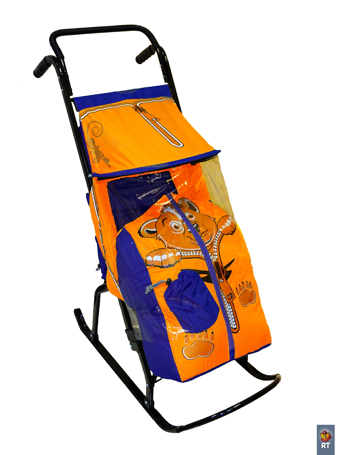 Санки-коляска снегурочка 2-р медвежонок синий-оранжевый