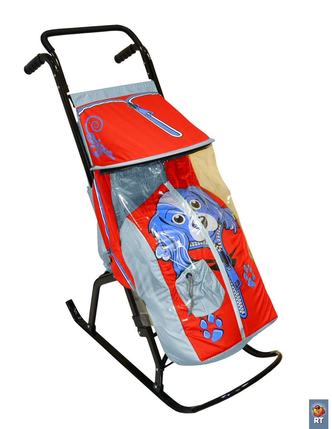 Санки-коляска снегурочка 2-р собачка серый-красный