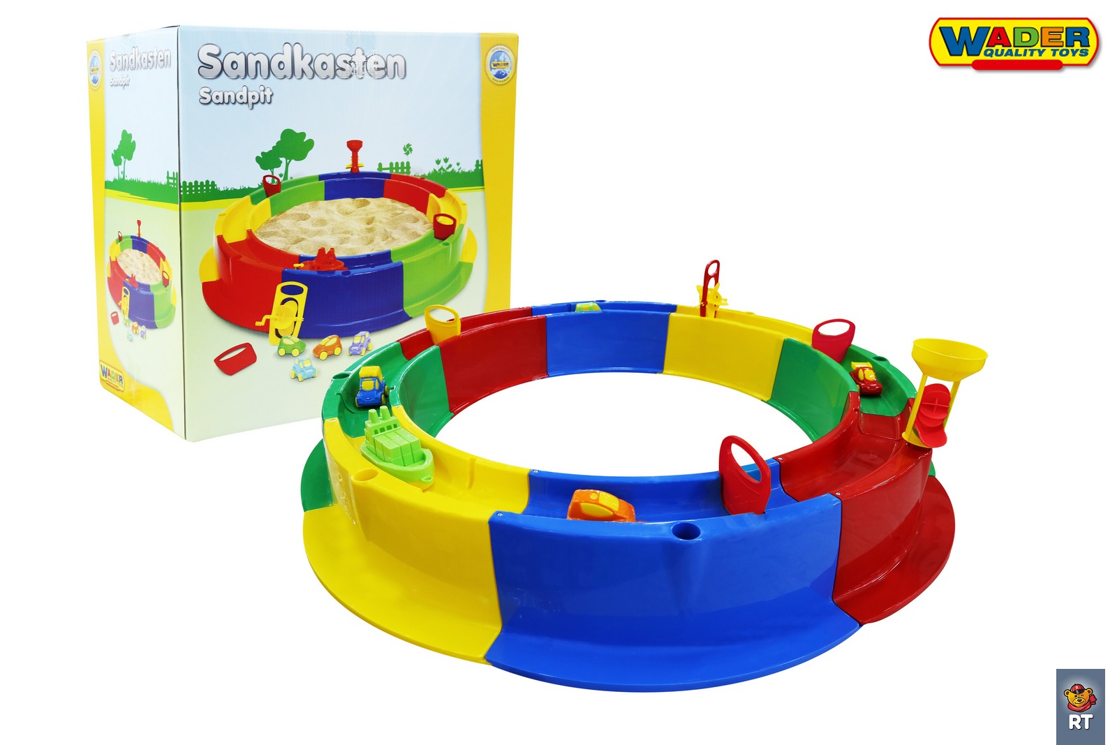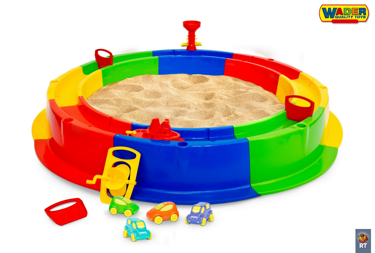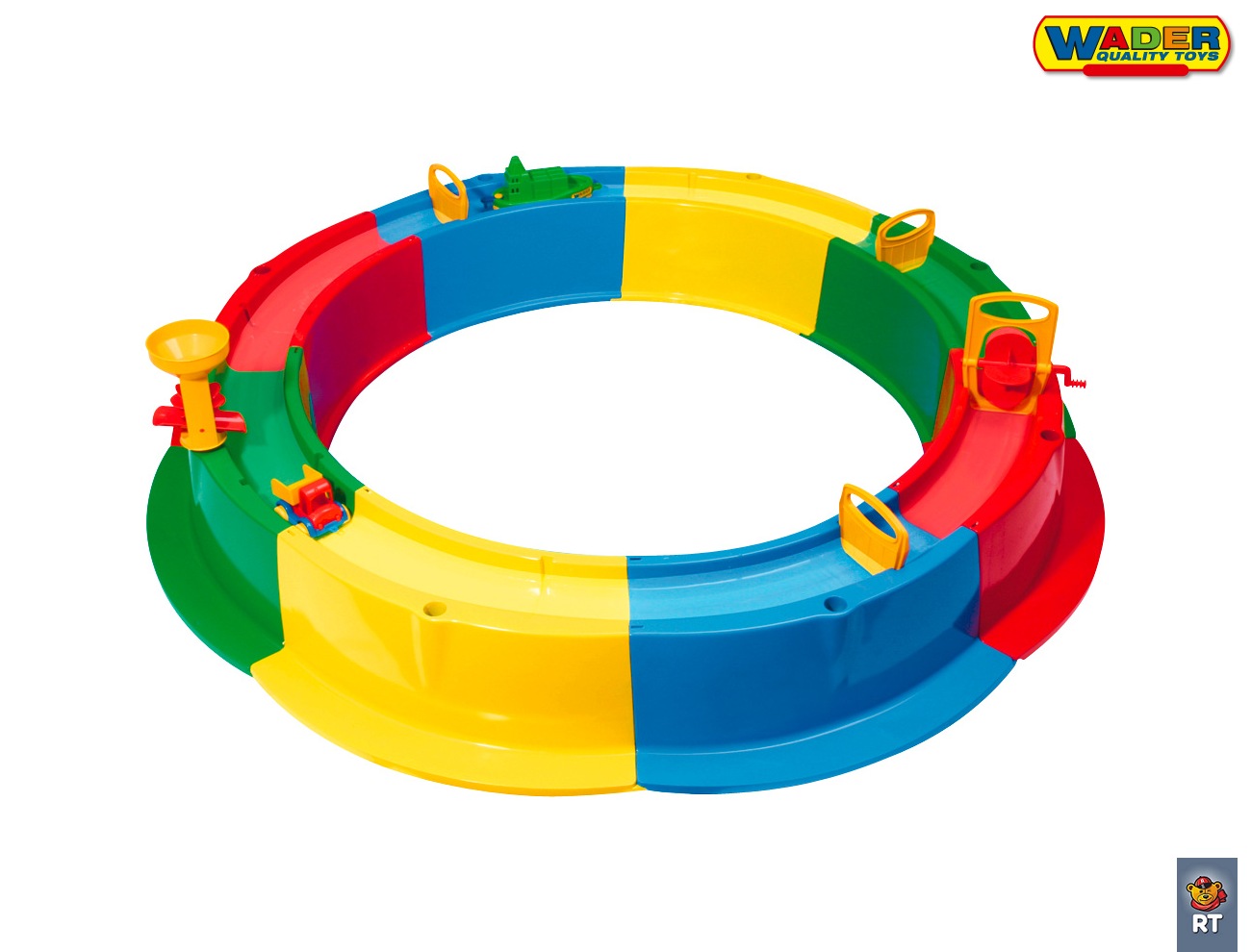 40923 песочница кольцо с водой wader 1360 мм. Необыкновенная песочница в виде кольца диаметром 1360мм. Вы такого нигде не видели! Бортик песочницы представляет из себя импровизированную реку с кораблями и водяными мельницами. Во внутрь песочницы можно засыпать песок, а сверху по всему диаметру песочницы есть желоб, по которому можно пускать воду. В комплекте есть мельница, которая устанавливается в желоб с водой. Вашему малышу будет очень интересно наблюдать как эта мельница крутит воду. И он сможет пускать по воде корабли и машинки, которые идут в комплекте с песочницей. Очень уникальная и развивающая фантазию песочница. Ваш малыш будет получать удовольствие от игры в ней. Пластиковую песочницу можно применять не только на улице, но и в помещении, а в качестве наполнителя использовать не песок, а пластиковые шары. Получится настоящий сухой бассейн. Этот вариант подойдет как дома, так и для игровых комнат в детских садах и для организации детских уголков в торговых предприятиях. Оцените это. Прочие Торговая Марка Wader ШтрихКод 4810344040923 Базовая единица шт Размер (см) диаметр 1360мм Артикул 00000004123 Вес (кг) 4 Размеры в упаковке (см) 54x31x51, 5 Вес в упаковке (кг) 4, 5 Объем в упаковке 0, 08 Артикул2 40923 Бренд Wader