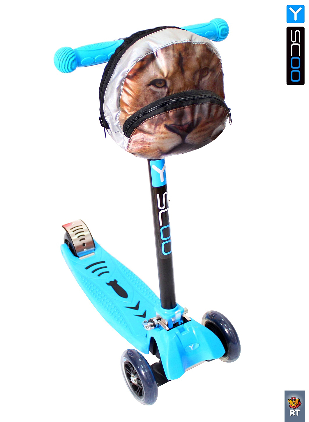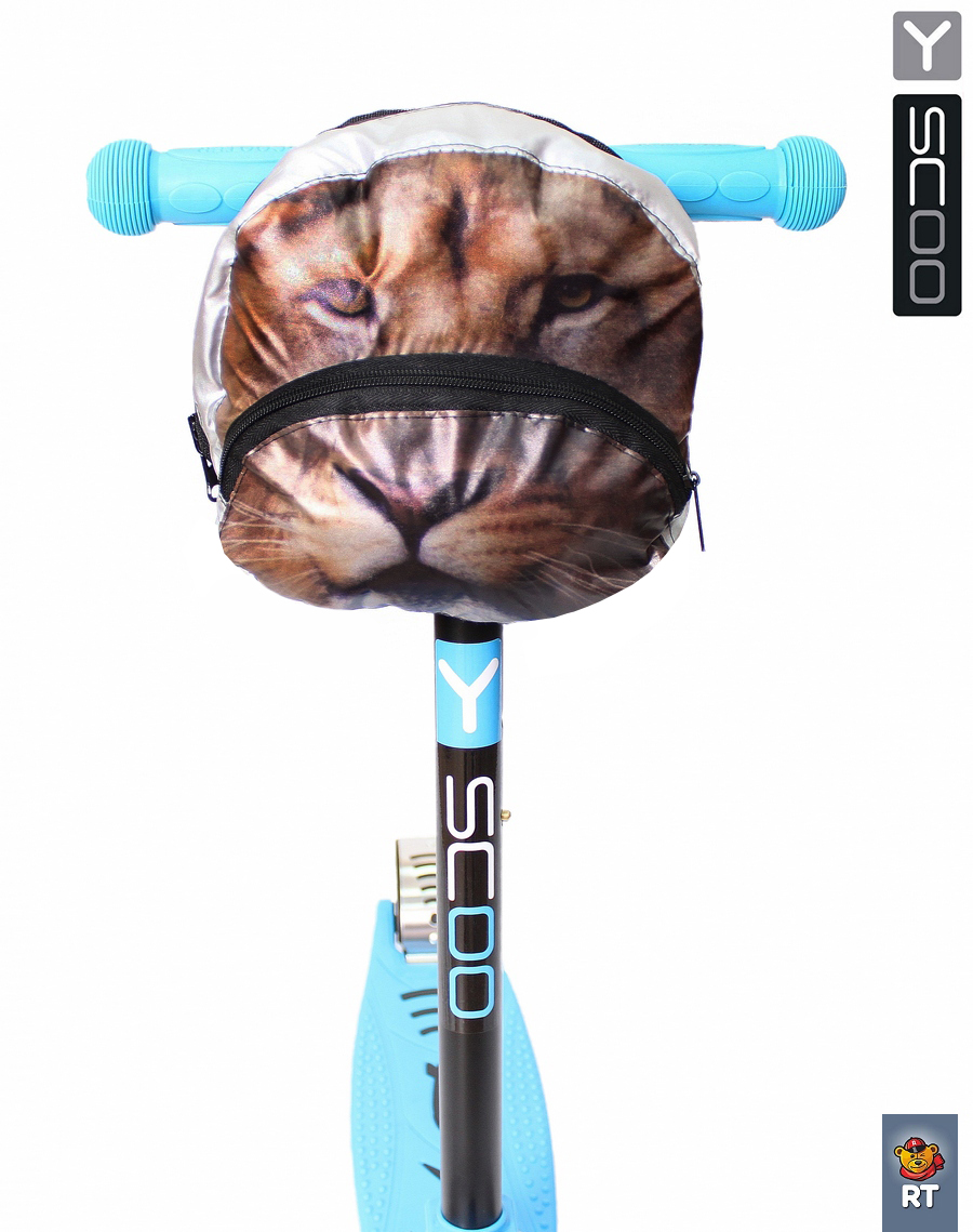 Сумка-чехол для самоката y-scoo bag лев. Дизайнерская сумка-чехол для самокатов от . Идеально подходит для всех трехколесных самокатов Y-SCOO, Y-BIKE и др. Также подходит для 2-х колесных самокатов Y-SCOO 125 мм, 145 мм. Оригинальный дизайн: маленькая сумка раскрывается и превращается в большой чехол на молнии с лямкой для плеча. И таким же образом быстро и легко большой чехол складывается в маленькую сумку, которая на глазах превращается в голову животного. Эту сумочку можно прикрепить на руль самоката. Дизайнерская сумка с молнией по всей длине и с отдельным карманом впереди. Сзади петли на липучках для крепления сумки на руль самоката. Дизайны: морда животного, череп. Когда сумка превращается в чехол черного цвета, его можно настроить с помощью плечевой лямки и удобно носить через плечо. Регулируемая плечевая лямка удобно настраивается по длине. Чехол очень удобный- молния во всю длину чехла позволяет быстро и просто убрать самокат в чехол. Чехол изготовлен из ткани с водоотталкивающей пропиткой OXFORD 600 черного цвета. Сбоку- карман из серебристой ткани для мелочей с логотипом . Очень прочный и надежный материал чехла прослужит Вам долго. Самокат в чехле- это очень удобно: не пачкает одежду, салон машины, не мешает окружающим и компактно хранится дома. Ребенку будет очень комфортно носить самокат в прочном чехле и он будет в восторге от дизайнерской сумки в виде зверя или черепа. Малышу понравится складывать и раскладывать чехол, превращая его в морду зверя. Ребенок с интересом будет проделывать это бесконечно. ! Прочие Торговая Марка Y-SCOO ШтрихКод 2018412609573 Базовая единица шт Размер (см) Сумка в разложенном виде 71х33х12, сумка-кошелек 20х19х7 Артикул 00000005023 Вес (кг) 0. 5 Размеры в упаковке (см) Сумка в разложенном виде 71х33х12, сумка-кошелек 20х19х7 Вес в упаковке (кг) 0. 5 Объем в упаковке 0. 004 Артикул2 Сумка-чехол Y-SCOO Бренд RT