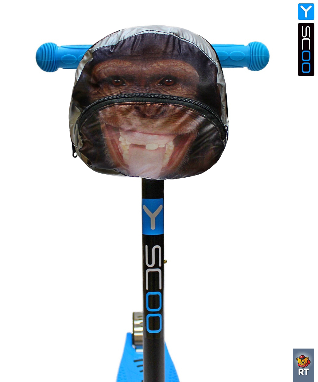 Сумка-чехол для самоката y-scoo bag обезьяна. Дизайнерская сумка-чехол для самокатов от . Идеально подходит для всех трехколесных самокатов Y-SCOO, Y-BIKE и др. Также подходит для 2-х колесных самокатов Y-SCOO 125 мм, 145 мм. Оригинальный дизайн: маленькая сумка раскрывается и превращается в большой чехол на молнии с лямкой для плеча. И таким же образом быстро и легко большой чехол складывается в маленькую сумку, которая на глазах превращается в голову животного. Эту сумочку можно прикрепить на руль самоката. Дизайнерская сумка с молнией по всей длине и с отдельным карманом впереди. Сзади петли на липучках для крепления сумки на руль самоката. Дизайны: морда животного, череп. Когда сумка превращается в чехол черного цвета, его можно настроить с помощью плечевой лямки и удобно носить через плечо. Регулируемая плечевая лямка удобно настраивается по длине. Чехол очень удобный- молния во всю длину чехла позволяет быстро и просто убрать самокат в чехол. Чехол изготовлен из ткани с водоотталкивающей пропиткой OXFORD 600 черного цвета. Сбоку- карман из серебристой ткани для мелочей с логотипом . Очень прочный и надежный материал чехла прослужит Вам долго. Самокат в чехле- это очень удобно: не пачкает одежду, салон машины, не мешает окружающим и компактно хранится дома. Ребенку будет очень комфортно носить самокат в прочном чехле и он будет в восторге от дизайнерской сумки в виде зверя или черепа. Малышу понравится складывать и раскладывать чехол, превращая его в морду зверя. Ребенок с интересом будет проделывать это бесконечно. ! Прочие Торговая Марка Y-SCOO ШтрихКод 2018412609580 Базовая единица шт Размер (см) Сумка в разложенном виде 71х33х12, сумка-кошелек 20х19х7 Артикул 00000005025 Вес (кг) 0. 5 Размеры в упаковке (см) Сумка в разложенном виде 71х33х12, сумка-кошелек 20х19х7 Вес в упаковке (кг) 0. 5 Объем в упаковке 0. 004 Артикул2 Сумка-чехол для самоката Y-SCOO Бренд RT