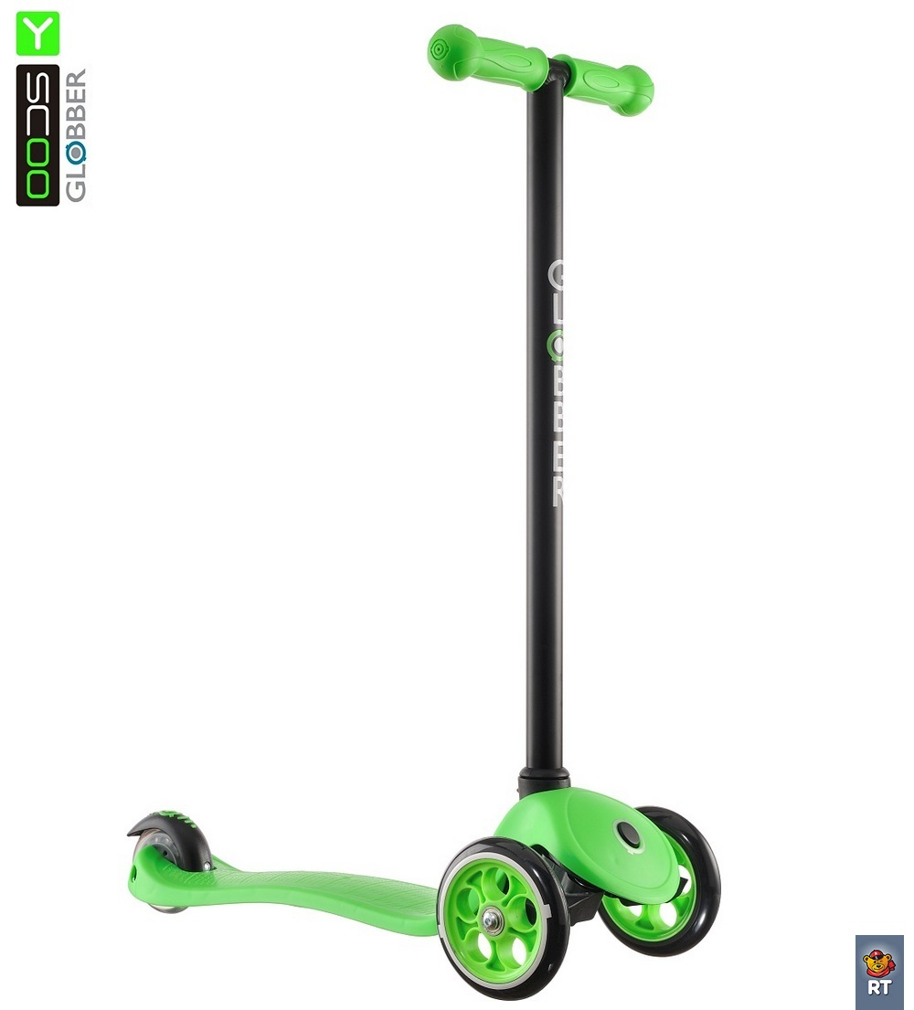 Самокат y-scoo rt globber my free fixed green с блокировкой колес. Встречайте новинку 2016 от Y-SCOO- Globber My Free FIXED с блокировкой передних колес. Очень дорогое черное матовое покрытие на ручке самоката с красивыми буквами Globber. Материал колес - полый, новая форма и цвет дисков -теперь от них невозможно оторвать взгляд. Рисунок дисков мы назвали пять планет. Колеса могут быть черными или прозрачными. Этот инновационный самокат с глобальным подходом к созданию самоката, идеально подходит для развития ребенка. Поэтому он и получил название Globber. Он глобален еще в том, что растет вместе с Вашим ребенком от 2 до 6 лет. Новая концепция в дизайне 3-х колесного самоката. Новая концепция в управлении. Заблокируйте 2 передних колеса простой кнопкой, чтобы малыш не смог завалиться на бок. Это уникальная находка наших инженеров- она поможет любому малышу в процессе обучения катанию на самокате. С этой инновационной функцией замка Ваш ребенок не упадет с самоката при обучению езде. А устойчивость самоката придаст малышу дополнительную уверенность. Он легко и бесстрашно будет осваивать самокат. Если Вы ищите первый самокат для своего малыша- нет самоката лучше Globber. Уникальная разработка платформы с выступающими бортиками по краям не даст ножке малыша соскользнуть с платформы. Мы также тщательно продумали форму платформы, на которой ноги малыша не будут уставать. Мы укрепили платформу тонкой и прочной стальной пластиной. Теперь малыш может прыгать на самокате –он выдержит любую нагрузку. Платформа имеет антискользящую поверхность. 2 передних колеса диаметром 121мм, и 1 заднее колесо диаметром 80 мм изготовлены из высококачественного полиуретана PU HQ (high quality)с нейлоновым наполнителем. Материал колеса HQ имеет высокую степень отскока. Высокоточные и скоростные подшипники ABEC 5 608ZZ. Алюминиевая ручка не меняется по высоте. Инновация - Безопасность обучения:Единственная в мире запатентованная система блокировки передних колес. Часто дети , которые только обучаются езде на самокатах с такой системой- наклон вправо- поворот вправо, наклон ручки влево- поворот влево, не умея еще уверенно держать равновесие, заваливаются на бок. Инженеры творческой мысли создали инновационную систему блокировки колес. Таким образом, чтобы помочь ребенку сначала освоить самокат , Вы сможете заблокировать колеса ( нажать на кнопку сверху панели самоката), и малыш спокойно может сначала учиться ездить только вперед. А потом, разблокировав колеса (нажать на красную кнопку под самокатом), Вы можете показать и научить малыша поворачивать, не боясь, что он упадет на бок. Это очень безопасно и легко при первых уроках обучению на самокате. Эргономика ручек на руле:Эргономичные прорезиненные ручки из эластичного двухкомпонентного материала с добавлением латекса необыкновенной формы. Впервые для большего комфорта мы удлинили ручки. Эргономика 10 баллов. Комфорт и большая износостойкость. Рулевое управление с усилителем:Продольные оси вращения (опоры передних колес) смонтированы на шарикоподшипниках для облегчения рулевого управления. Безопасность и долговечность:Более длинный тормоз для быстрой и безопасной остановки. Мы продумали покрытие заднего колеса- теперь торможение происходит быстрее . А колесу не страшна никакая деформация. Комфорт в использовании:Низкая платформа для большей устойчи