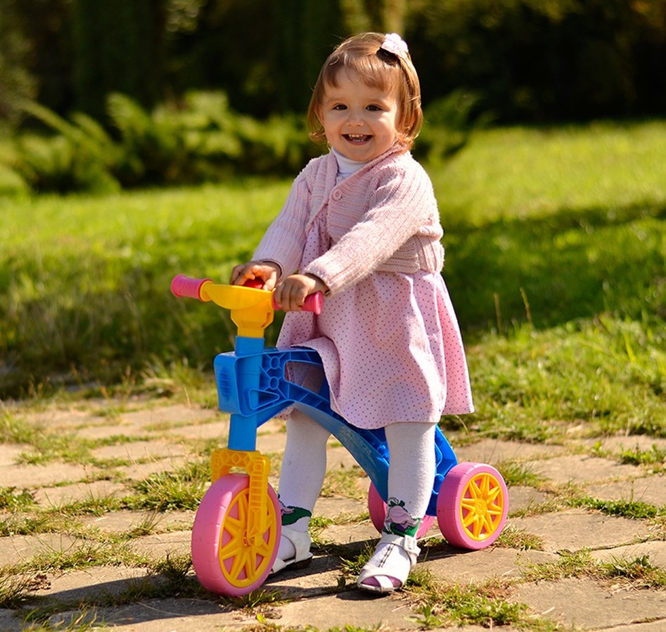 Это первая каталка- беговел ребенка, которая поможет научиться держать равновесие, сохранять баланс тела при езде.