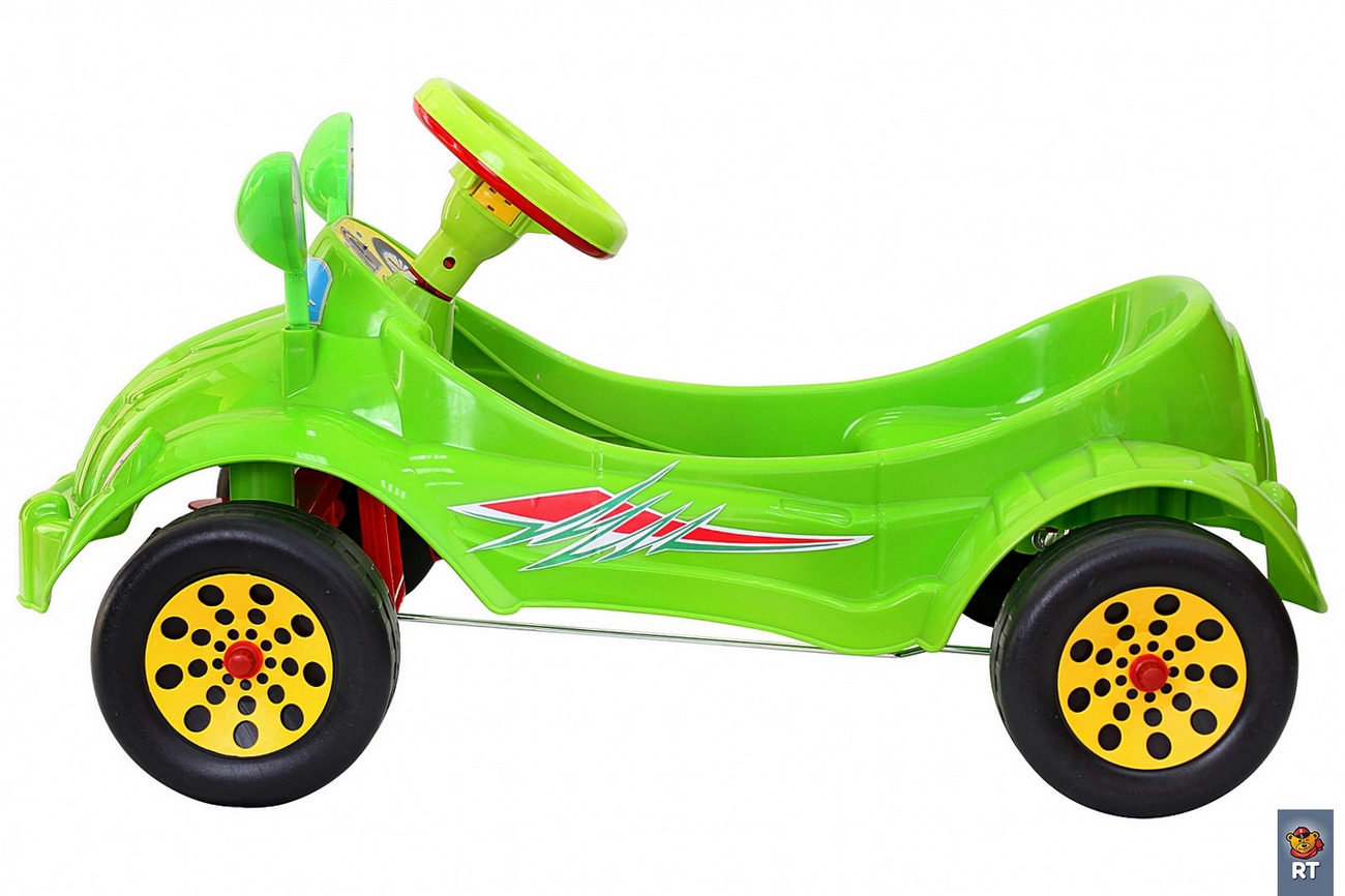 Ор09-903 машина педальная молния с музыкальным рулем зеленая. Уникальные машинки на педалях из нашего детства. Механизм педалей такой, как в детстве был у советских машинок. Получается этот автомобиль - раритет, который может себе позволить только Ваш малыш. Автомобиль не имеет дна, но оснащен удобным сиденьем и двумя надежными педалями, которые запускают в движение колеса. Достаточно по очереди нажимать на педали и машина будет ехать вперед. Поворачивая руль, автомобиль можно направлять направо или налево. Ребенок оценит этот простой, но очень необычный и надежный механизм управления. В отличии от аккумуляторных машин на пульте управления Ваш ребенок будет успешно развиваться физически, укреплять мышцы ног, спины, живота. Такой способ управления автомобилем не просто заинтересует Вашего малыша, но и приведет его в полнейший восторг. Это первый автомобиль так похожий на реальный, потому что малыш сидит внутри и управляет им как водитель. Он может даже сигналить и слушать музыку, потому что руль- музыкальный. Красивые мелодии, красивые звуки. Эта необычная альтернатива детскому велосипеду. Многие дети оценят новую систему управления, после которой им легко будет научиться кататься на велосипеде или на другом виде транспорта. Корпус- упрочненный высококачественный пластик, не подвержен деформации и перепаду температур. Дизайн и аэродинамические формы спортивного автомобиля как Formula 1 покорят Вашего малыша с первого взгляда. Выполнена по самым современным технологиям и соответствует всем высочайшим стандартам качества и безопасности. Уникальность этой машины- очень легкий вес для своих размеров- всего 3 кг. Автомобиль очень устойчивый - никогда не перевернется. Идеально подойдет для малышей от 3 лет. Эргономичное сиденье с высокой спинкой. Очень устойчивые, широкие и проходимые колеса легко справятся с любым покрытием дорог. У автомобиля имеются боковые зеркала заднего вида. Эту педальную машину можно использовать и дома, и на улице. Аэродинамичный и обтекаемый дизайн понравится с первого взгляда и Ваш малыш не захочет расставаться с ней. Максимальная нагрузка 35 кг. . Продается в полной сборке. Нужно только прикрепить руль. Но перед тем как вставить руль, необходимо вставить батарейки. В руле есть отсек, в который вставляются 2 батарейки типа АА 1, 5 V. Отсек закрывается крышкой. Рекомендуется детям от 3 лет. Упаковка- пакет. Прочие Торговая Марка RT ШтрихКод 4820102290866 Базовая единица шт Размер (см) 88х54х44 Артикул 00000005686 Вес (кг) 3 Размеры в упаковке (см) 88х54х44 Вес в упаковке (кг) 3 Объем в упаковке 0. 2 Артикул2 ОР09-903 зеленая Бренд RT