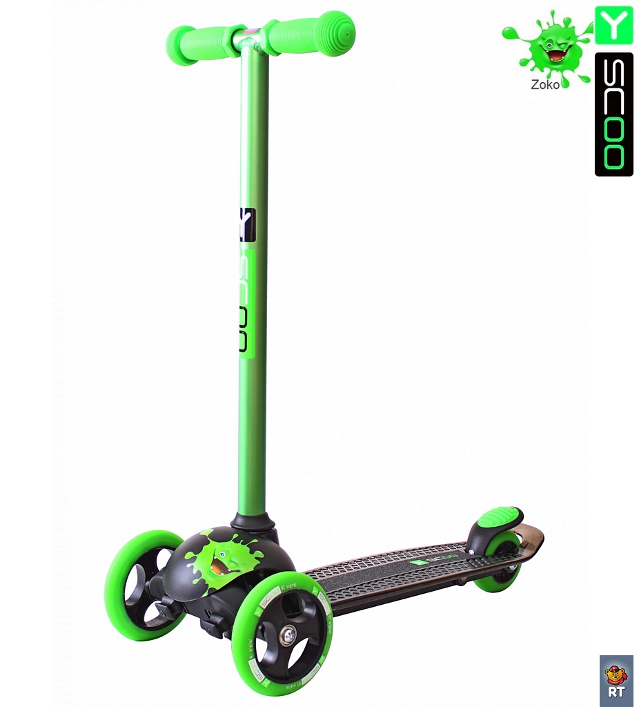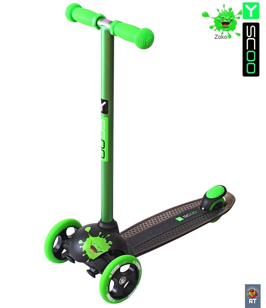 Самокат трехколесный y-scoo rt trio diamond 120 monsters 1 высота с блокир. Знакомьтесь! Монстрики : Zoko, Zoi, Zerro, Ziggi. Веселые и милые монстрики понравятся малышам. У каждого свой характер и свое лицо! Кроме шутливого нрава, эти самокаты поражают своими новыми технологиями. Наши инженеры словно ювелиры трудились над каждой деталью и создали настоящий бриллиант в коллекции Y-SCOO - Trio DIAMOND 120 Monsters . Полюбуйтесь результатом! Этот самокат переливается на солнце совершенными гранями, из которых создана платформа. Рифленая полупрозрачная платформа с ромбовидными гранями создана по новейшей технологии гибкого и прочного стекловолокна. Легкая пластиковая платформа из термопластичного полипропилена, армированная стекловолокном для прочности. Уникальная разработка платформы с рифленой поверхностью из граней не даст ножке малыша соскользнуть с платформы. Безопасность- 10 баллов. Мы также тщательно продумали форму платформы, на которой ноги малыша не будут уставать. Мы укрепили платформу тонкой и прочной стальной пластиной. Теперь малыш может прыгать на самокате –он выдержит любую нагрузку. Каждый раз мы совершенствуем технологии и материалы. В этой модели мы удивляем Вас супермягкими силиконовыми ручками на руле самоката. Это новые материалы и новейшая технология, которую мы впервые использовали в модели Trio DIAMOND 120. Y-SCOO - бренд , постоянно доказывающий свою уникальность, готов удивлять Вас снова и снова. . ВПЕРВЫЕ и только у самокатов Y-SCOO : международный патент- уникальная система блокировки передних колес LOCK/BLOCK. Очень простая и надежная система блокирования передних колес самоката путем перемещения квадратных фиксаторов в пазы. Система расположена между передними колесами, под передней панелью внизу самоката. Поочередно поднимая квадратный пластиковый фиксатор, переставляйте его в пазы и выбирайте положение блокировки. 3 положения: колеса заблокированы, колеса заблокированы наполовину и имеют небольшой ход, колеса не заблокированы и имеют свободный ход. Когда колеса заблокированы и фиксаторы стоят в центре (ближе к друг другу), руль не наклоняется вправо/влево и самокат может ехать только прямо. Это придумано для малышей, которые только начали обучение катанию на самокате и случайно могут завалиться набок. С системой блокировки безопасность- 10 баллов. Когда фиксаторы передвинуты и стоят на середине, руль имеет небольшой ход и наклоняя самокат, малыш немного может поворачивать вправо или влево. Это положение можно выбрать, когда малыш немного освоил катание вперед и уже уверенно себя чувствует на самокате. Когда фиксаторы передвинуты и стоят по краям (дальше друг от друга), руль имеет свободный ход и управлять самокатом можно в полной мере. Главное, контролировать малыша, когда он наклоняет руль и поворачивает самокат. С системой LOCK/BLOCK обучение катанию на самокате будет безопасным и очень быстрым. Вы и Ваш малыш оцените наши новые наклейки, которые никогда не отклеются, потому что созданы по технологии Water sticker. Это переводные картинки из нашего далекого детства, но созданные по современным технологиям. Вы по достоинству оцените это высокое качество. Уникальность этой модели- в заднем колесе. Колесо- широкое, устойчивое и мягкое. Не подвержено стиранию и деформации. Благодаря широкому заднему колесу, самокат очень устойчив. А устойчивость самок