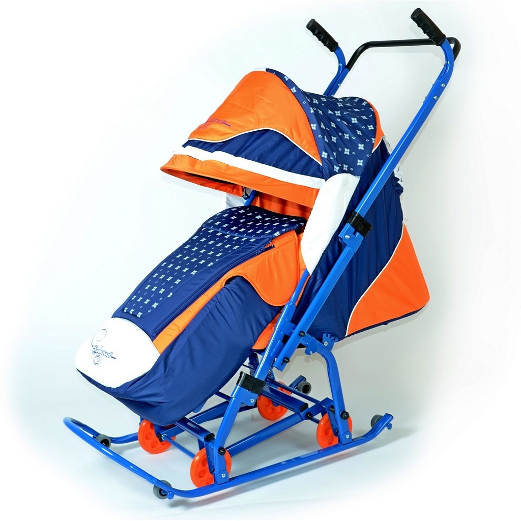 0913-р14 санки-коляска скользяшки “мозаика” синий-оранжевый-бе