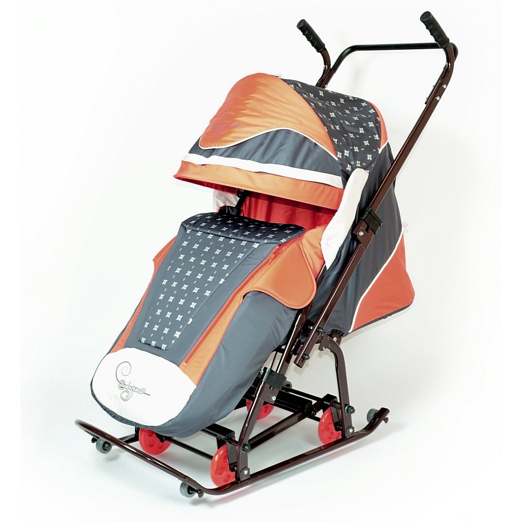 0931-р14 санки-коляска скользяшки “мозаика” коричневый-террако