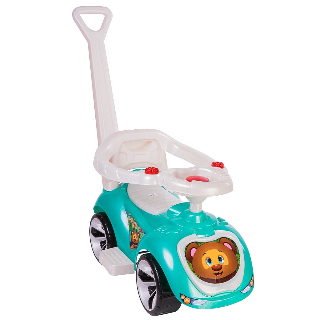 Ор809 каталка машинка с родительской ручкой мишка (lapa) цвет бирюзовый