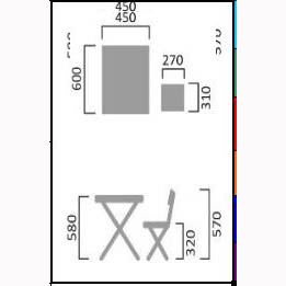 Размер (см): Стол 60х45х58, стул 31х27х32/57