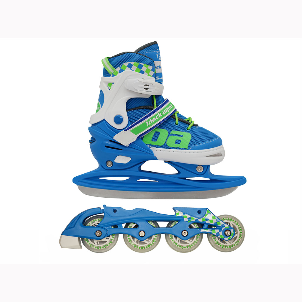 As-409 коньки Blackaqua 2в1 (коньки+ролики) , голубой-салатовый S (31-34р)