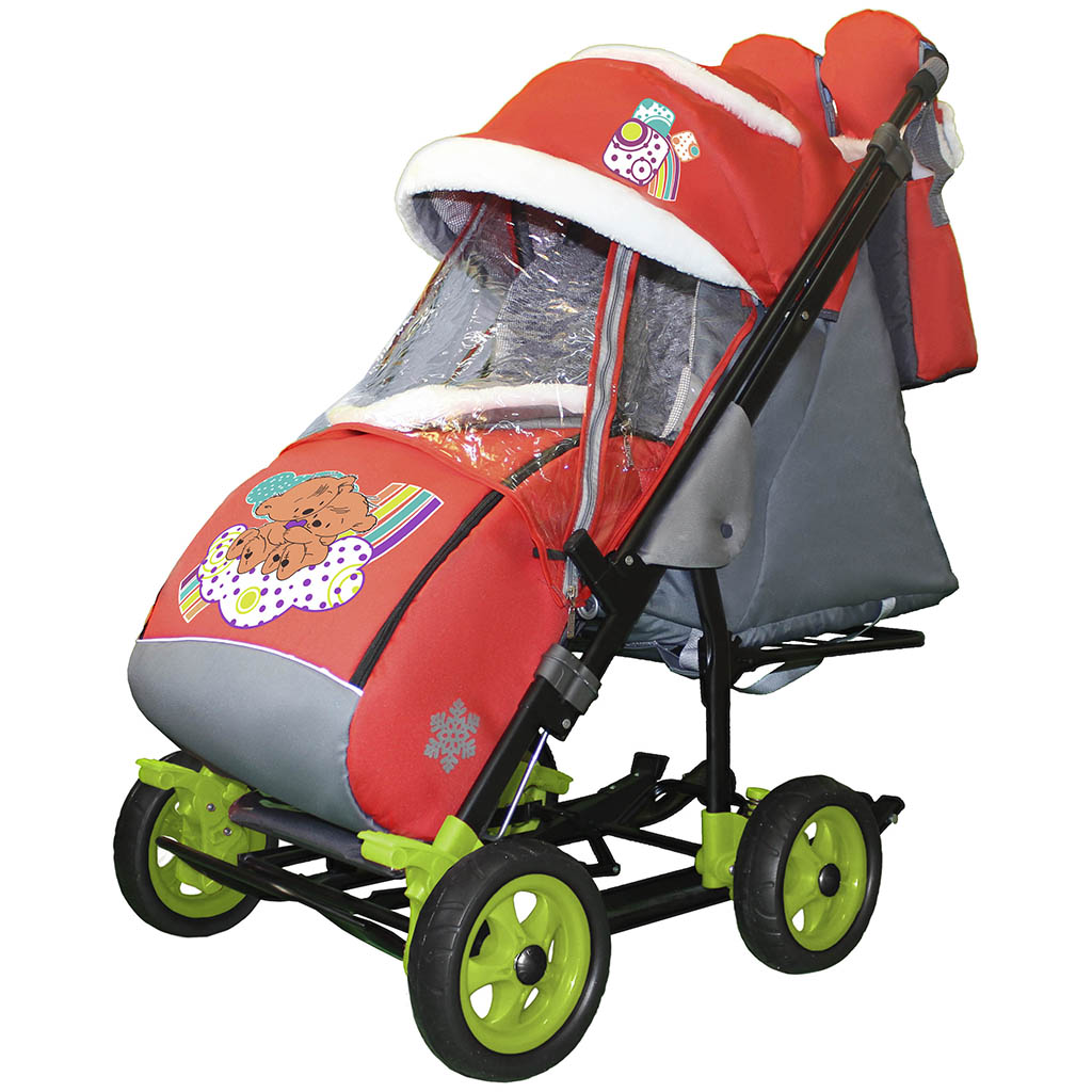 Санки-коляска Snow Galaxy City-3-1 два медведя на облаке на красном на бол