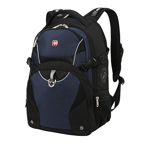Рюкзак Wenger цв.чёрный, синий, чёрный, с двумя отделениями, карман органа