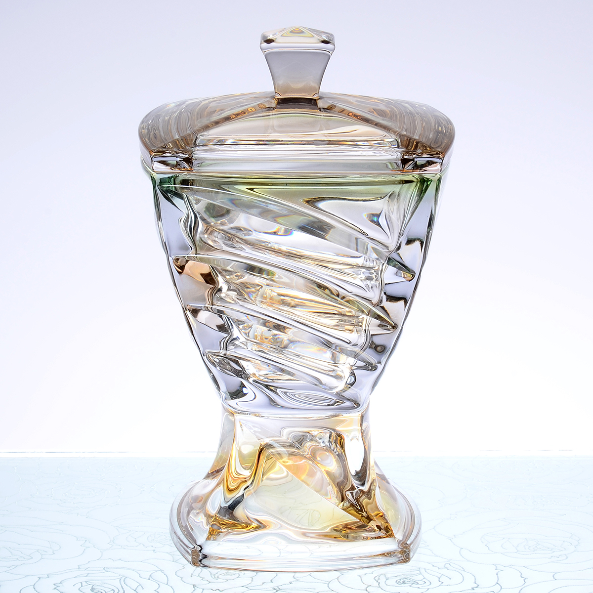 Конфетница с крышкой на ножке bohemia gold facet 24 см. Тип товара Конфетницы (Чехия, Стекло, Bohemia Gold) Страна происхождения Чехия Материал Стекло Бренд Bohemia Gold Серия Facet Назначение Предмет домашнего обихода из стекла