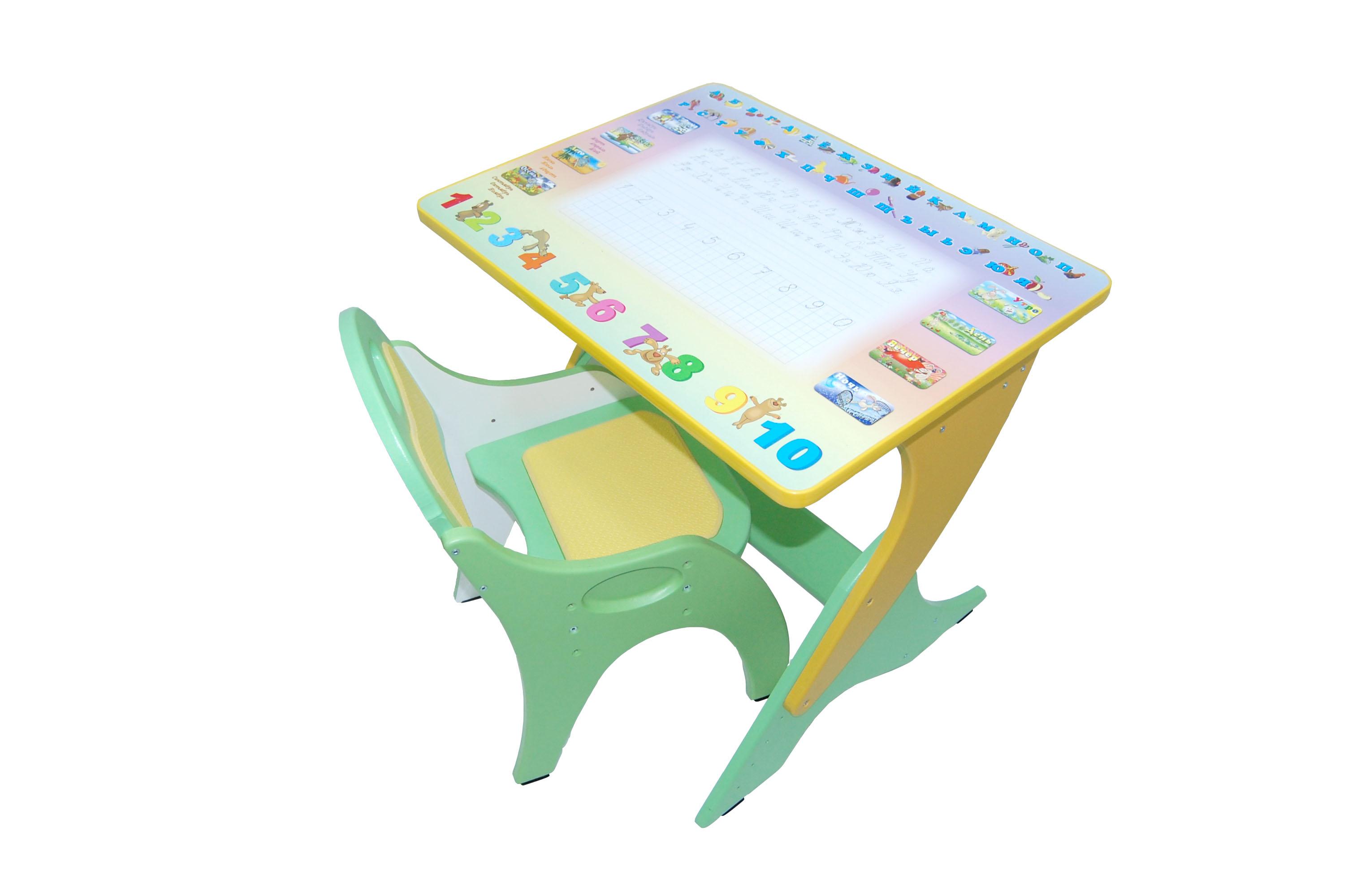 Столик с аппликацией, стульчик с регул по высоте прямоугольный буквы-цифры