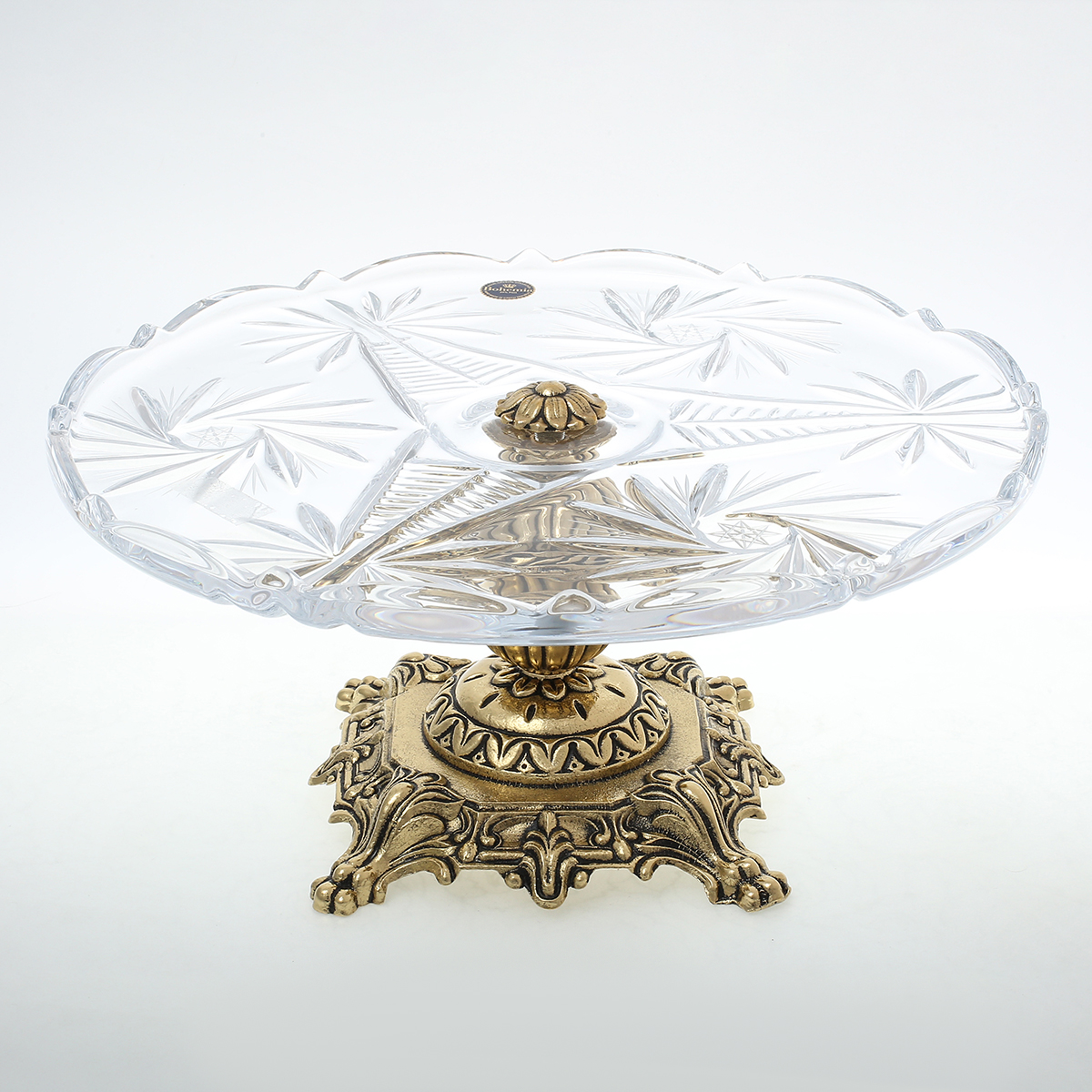 Блюдо сервировочное «Античная роза», d=28 см, на ножке, цвет платиновый *Таблетница* T 822 G5/G Gold с крист. (12)
