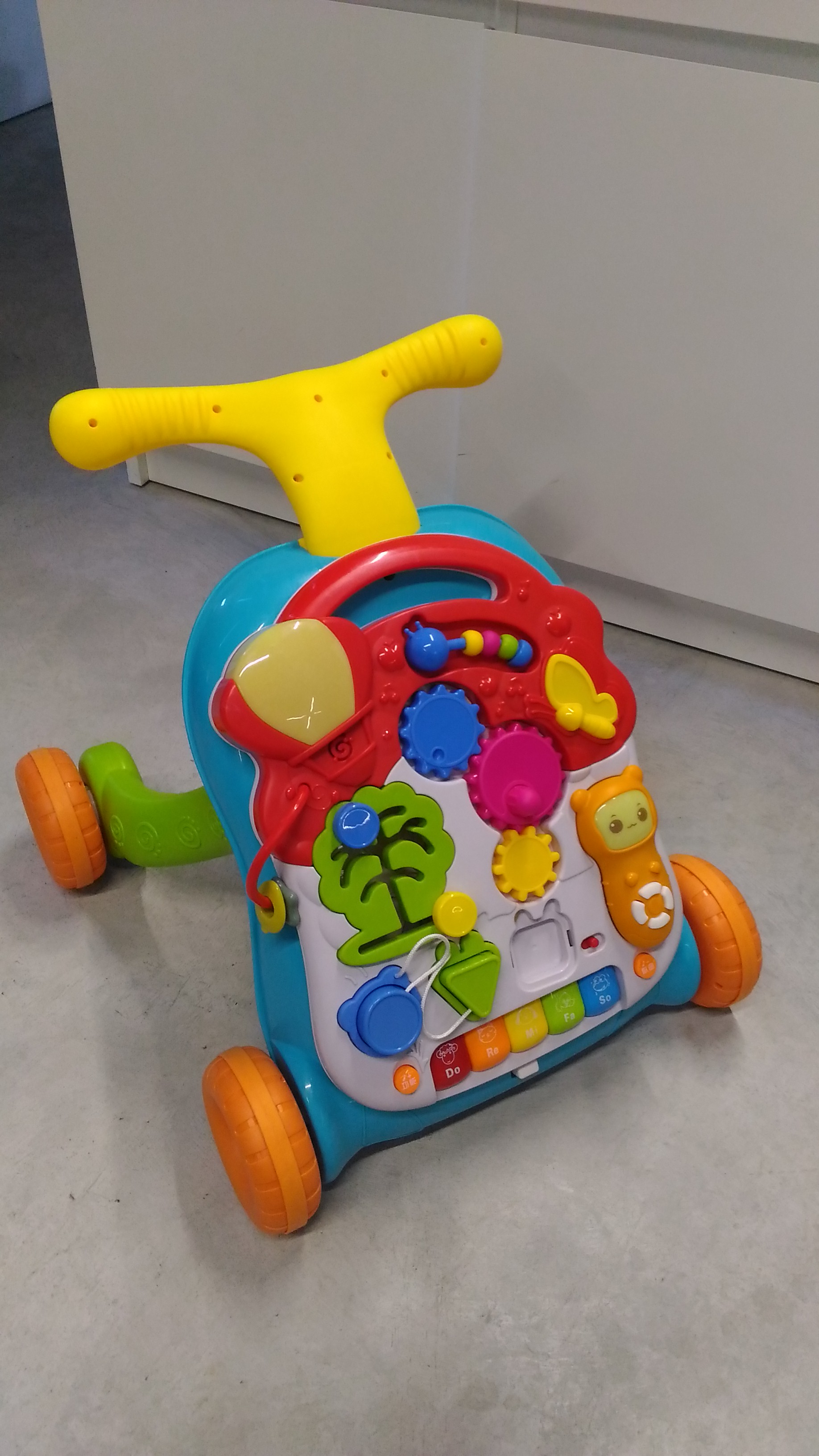 Многофункциональный игровой центр - мечта не только малышей, но и родителей. Эта игрушка - и каталка-ходунки, и развивающий игровой центр одновременно. Яркий бизиборд с музыкой и интересными заданиями надолго увлечет малыша, а если ему захочется подвигаться - каталка-ходунки придут на помощь. С бизибордом можно играть, когда он в вертикальном положении, а можно отделить от каталки и превратить его в развивающий столик. Игрушка развивает интеллектуальные и физические навыки крохи, подарив ему хорошее настроение.