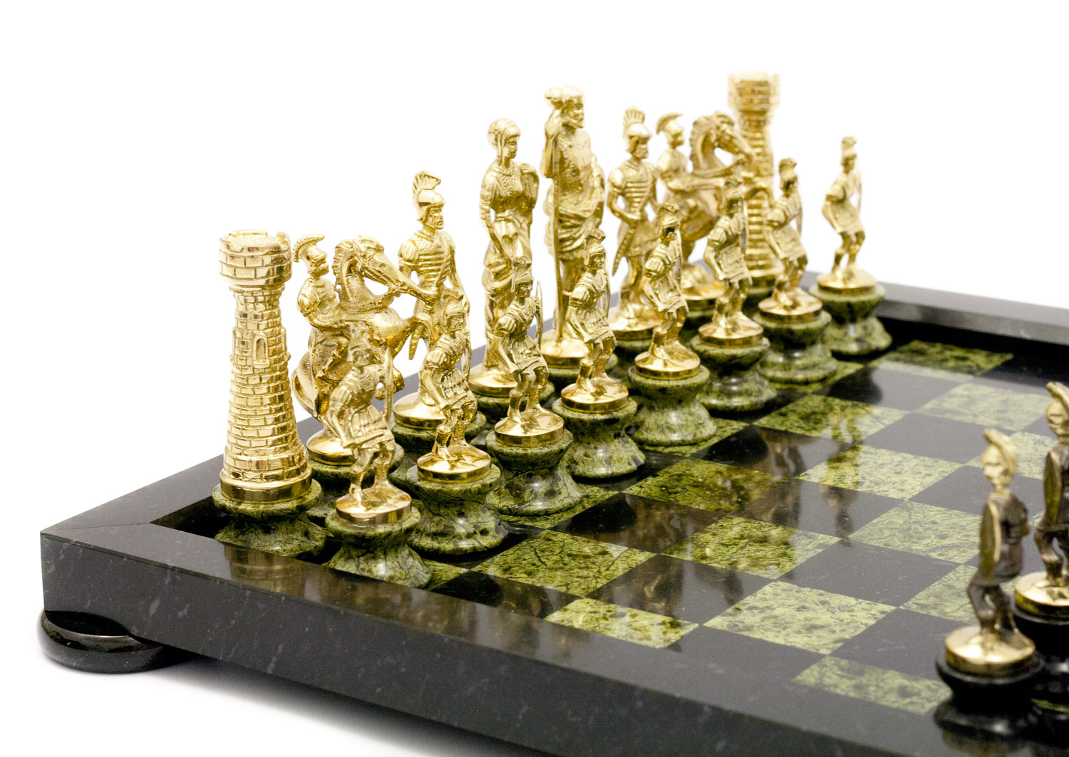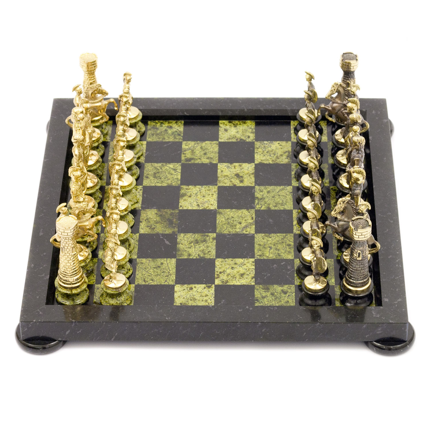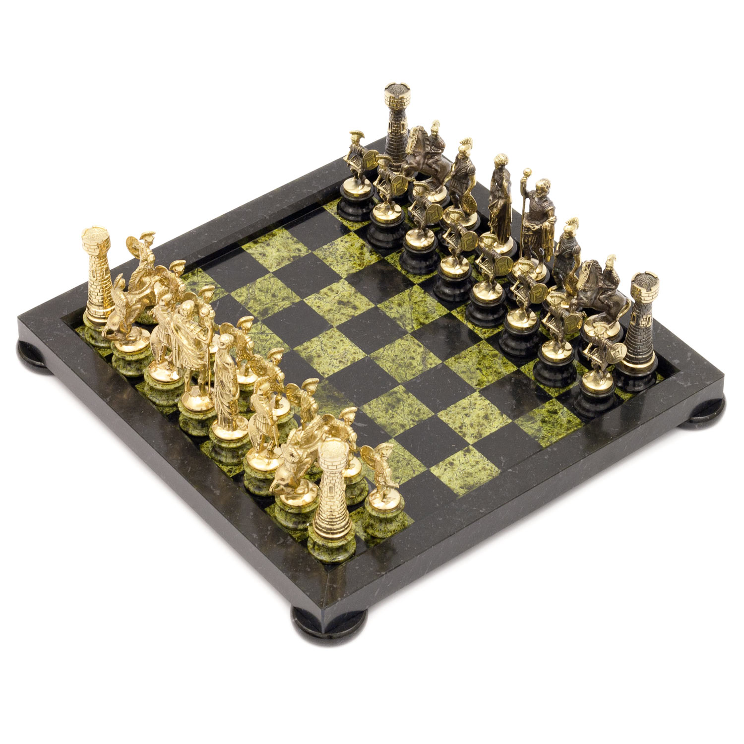 Шахматы "римские" на подставках бронза змеевик 38х38см