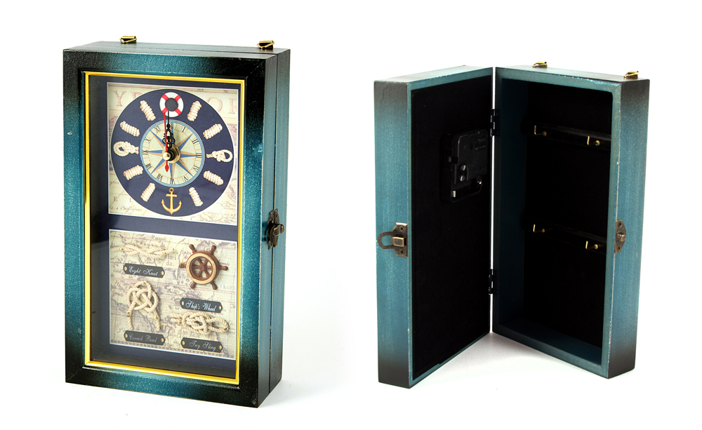 Коллаж-ключница с часами морские узлы 15*7*25см. Артикул: 33883 Материал: Дерево Назначение: Прихожая, Дача Направленность: Мужские Праздник: 23 февраля, День ВМФ Сертификация: Товар не подлежит обязательной сертификации. Состав: дерево (китайс ель), полирезин, MDF, эл. металла (медь), текстиль, бум
