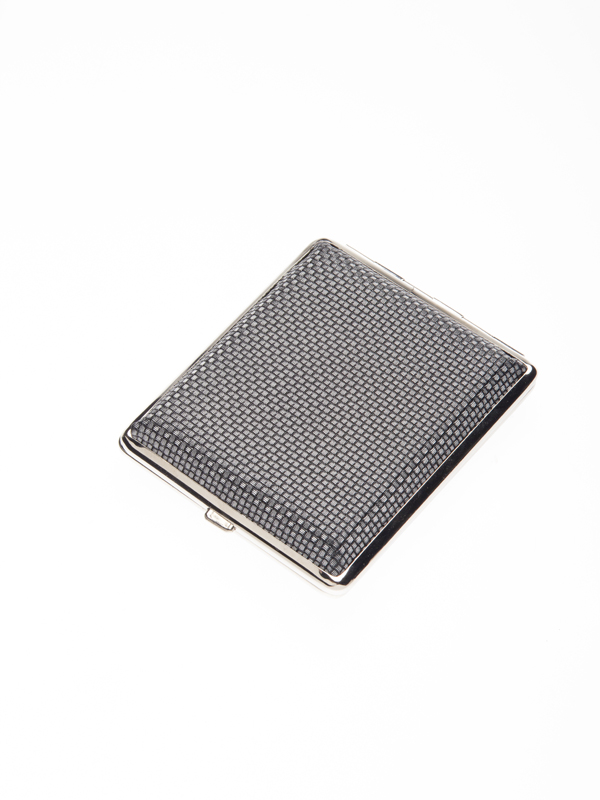 Портсигар S.Quire, сталь+искусственная кожа, черный цвет с рисунком, 99*72