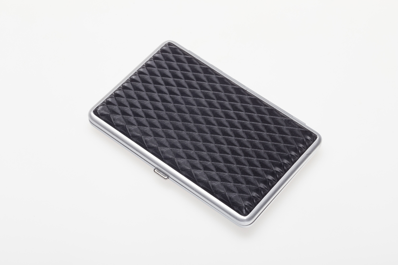 Портсигар S.Quire, сталь+искусственная кожа, черный цвет с рисунком, 74*95
