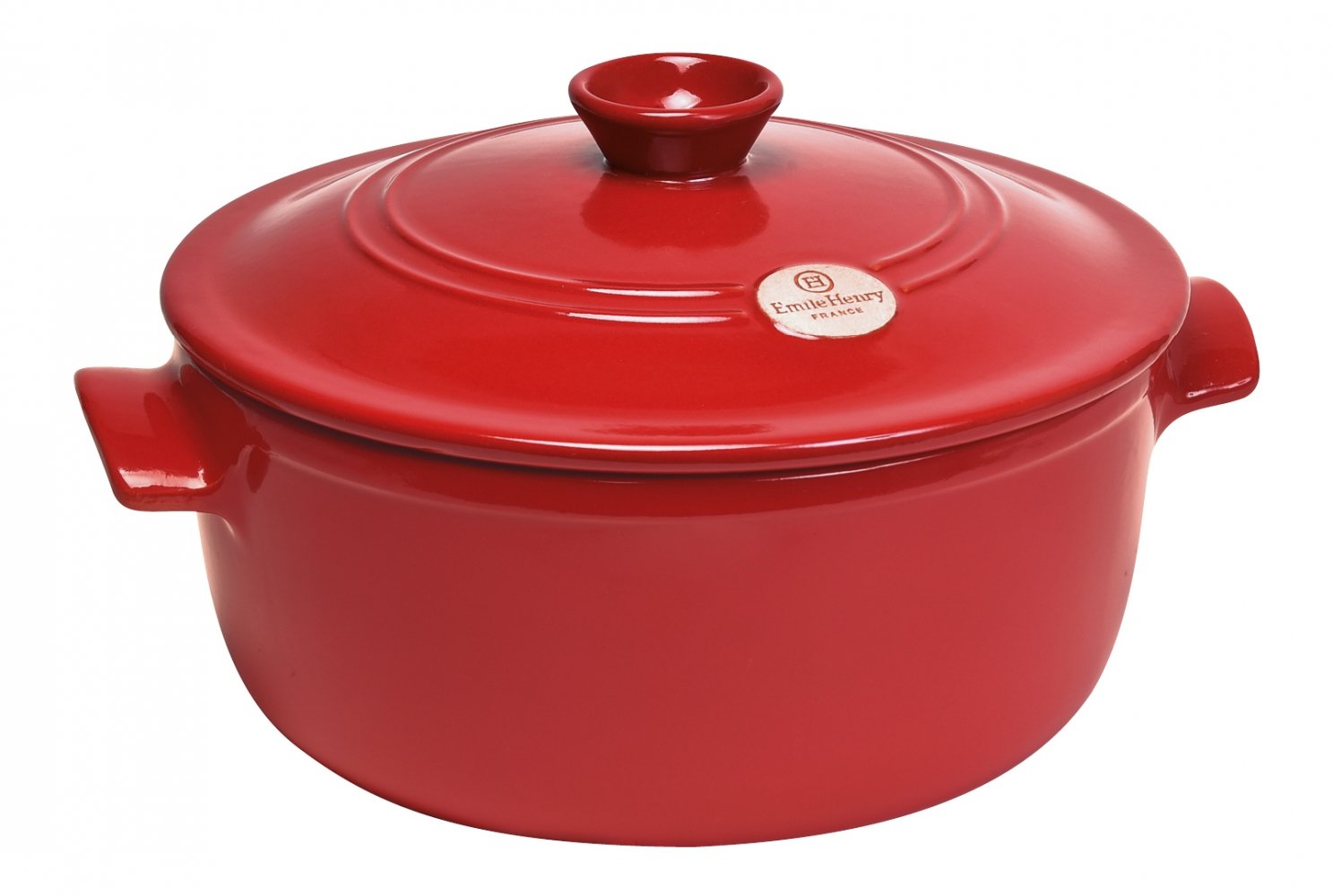 Круглая кастрюля emile-henry 5,3 л, цвет:гранат. Бренд: Emile Henry Страна: Франция Описание: Благодаря инновационной керамике Flame наши кастрюли обеспечивают медленное и равномерное приготовление блюд, сохраняя свойства и аромат всех ингредиентов. Как сделать так, чтобы мясо покрылось золотистой корочкой, но внутри оставалось мягким и сочным? Как лучше приготовить блюдо, если его нужно варить очень долго? Просто возьмите круглую или овальную кастрюлю, поместите в нее необходимые продукты, поставьте на медленный огонь, и накройте крышкой, особая конструкция которой обеспечит внутри прекрасную циркуляцию пара. Наши кастрюли подходят для использования в духовках и на всех видах плит (кроме индукционных). За ними легко ухаживать, их можно мыть в посудомоечной машине, они не теряют цвет с течением времени. * для индукционных плит необходим специальный диск