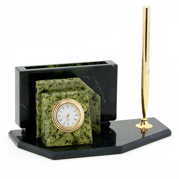 Мини-набор для бумаг с ручкой камень змеевик