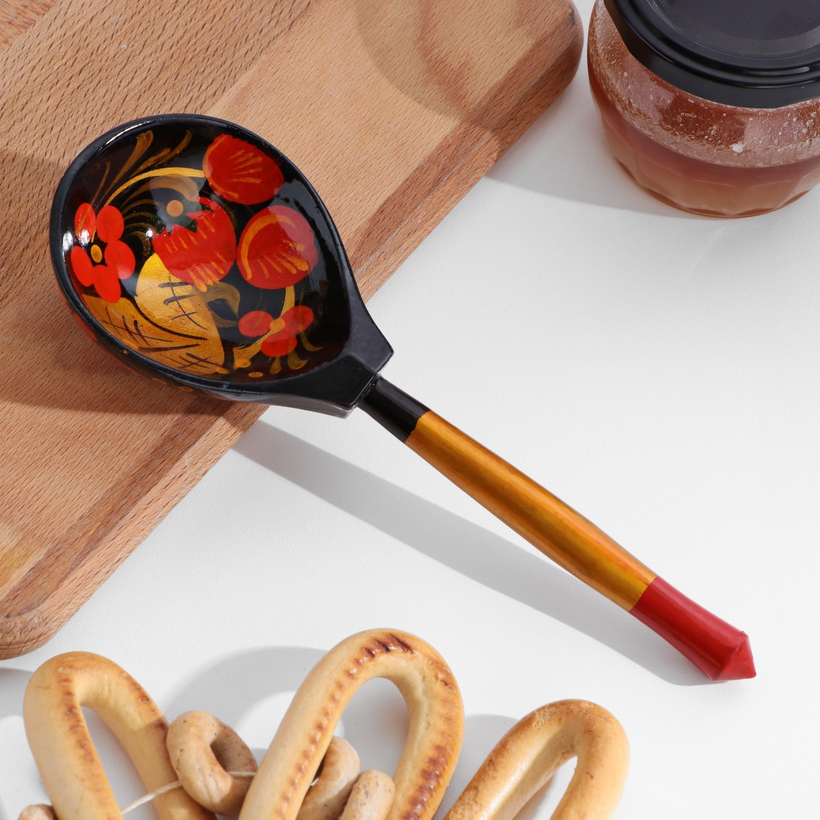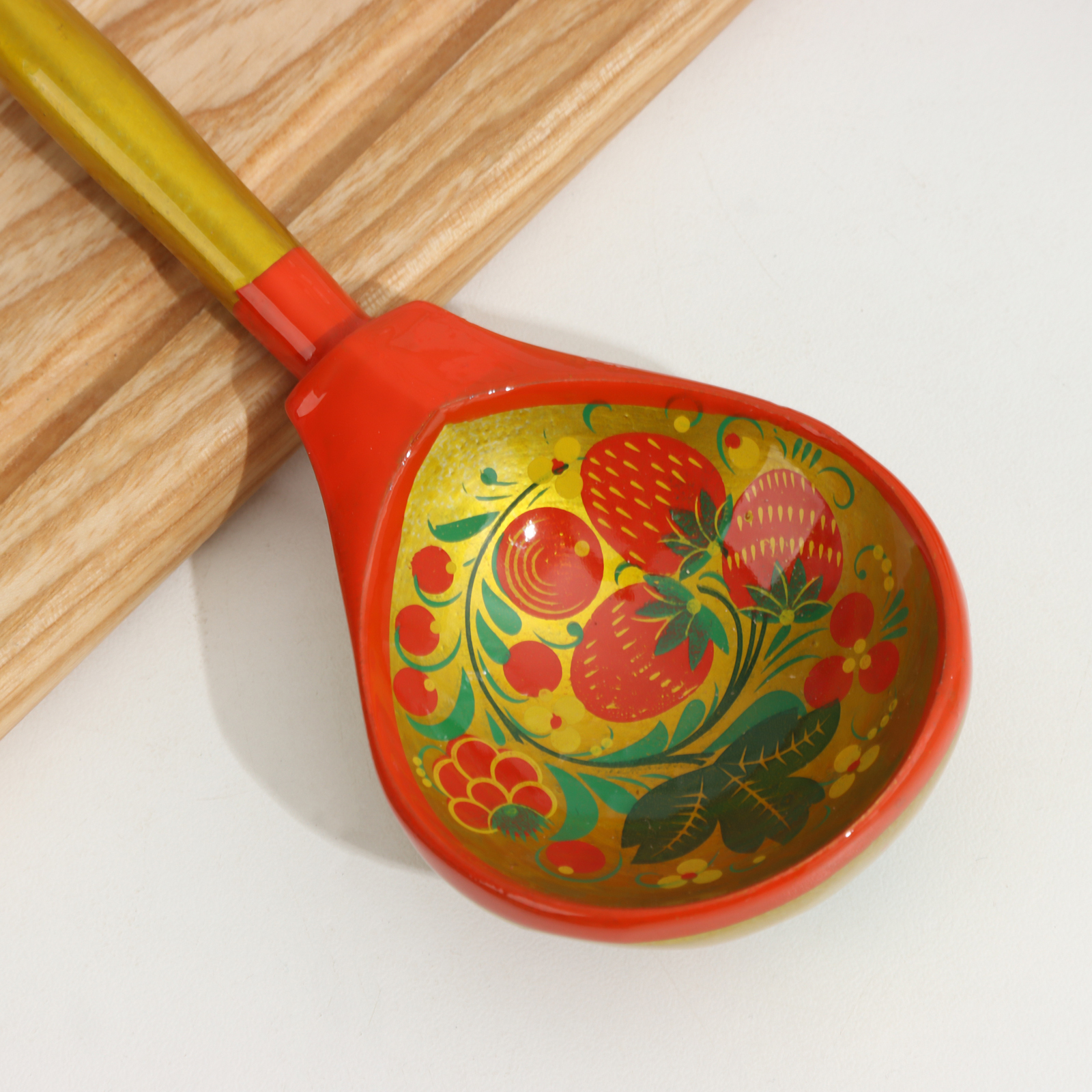 Ложка полубаская «традиционная», 19x6 см, микс. Хохлома — один из старейших русских народных промыслов. Любима она и сегодня за свои неповторимые узоры и гармоничное цветовое сочетание. Основные краски, применяемые в хохломской росписи, относятся к тёплой гамме спектра: красный, чёрный, золотой. Сочетание этих цветов, пришедших из иконописи, очень символично: Красный (красивый) — цвет власти; Золотой — цвет поиска, благополучия, божественного начала; Чёрный — цвет занавеси перед вечной жизнью, цвет духовного очищения. Традиционные элементы Хохломы — ягоды рябины и земляники, цветы и листья, птицы, рыбы и звери. Расписывают изделия вручную, без предварительной разметки, благодаря этому каждое изделие уникально, и рисунок каждый раз отличается от предыдущего. Цвет: Разноцветный Возраст: От 1 года parts count: 0 tnved: 4419900000 Оформление: Художественная роспись Материал ручки: Дерево Вид дерева: Берёза Материал: Дерево Из натурального дерева: Да Тип нанесения рисунка: Ручная роспись Ручная работа: Да Назначение: Столовые Назначение: Сувенирные Вид: Ложки Температурное ограничение: Нет Можно мыть в посудомоечной машине: Нет Можно использовать в СВЧ-печи: Нет Цвет ручки: Золотистый Вид музыкального инструмента: Ложки Матовая поверхность: Нет Внешний вид: Без особенностей  развернуть описание ▼