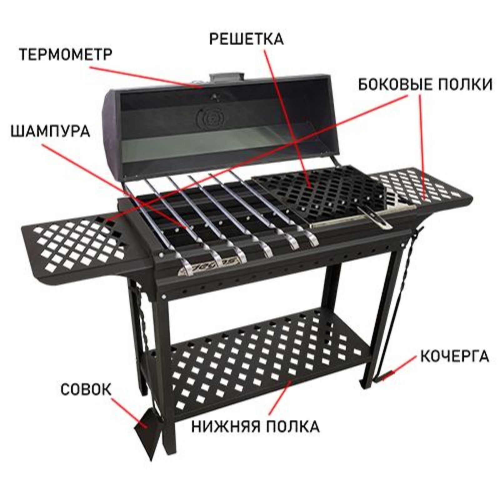 Мангал «пегас пикник 2», совок, кочерга, решетка, гриль, барбекю, шампура 6 шт.