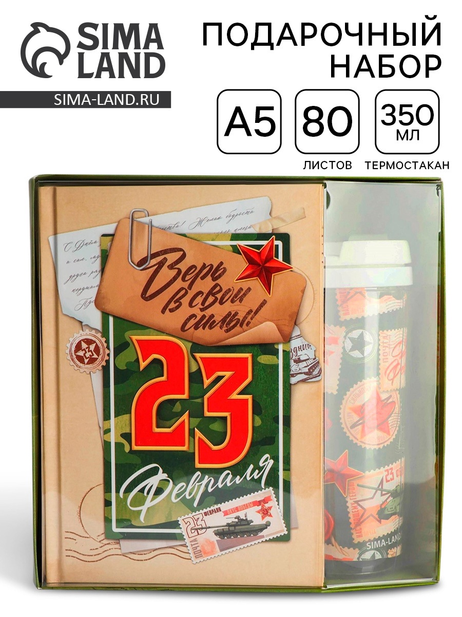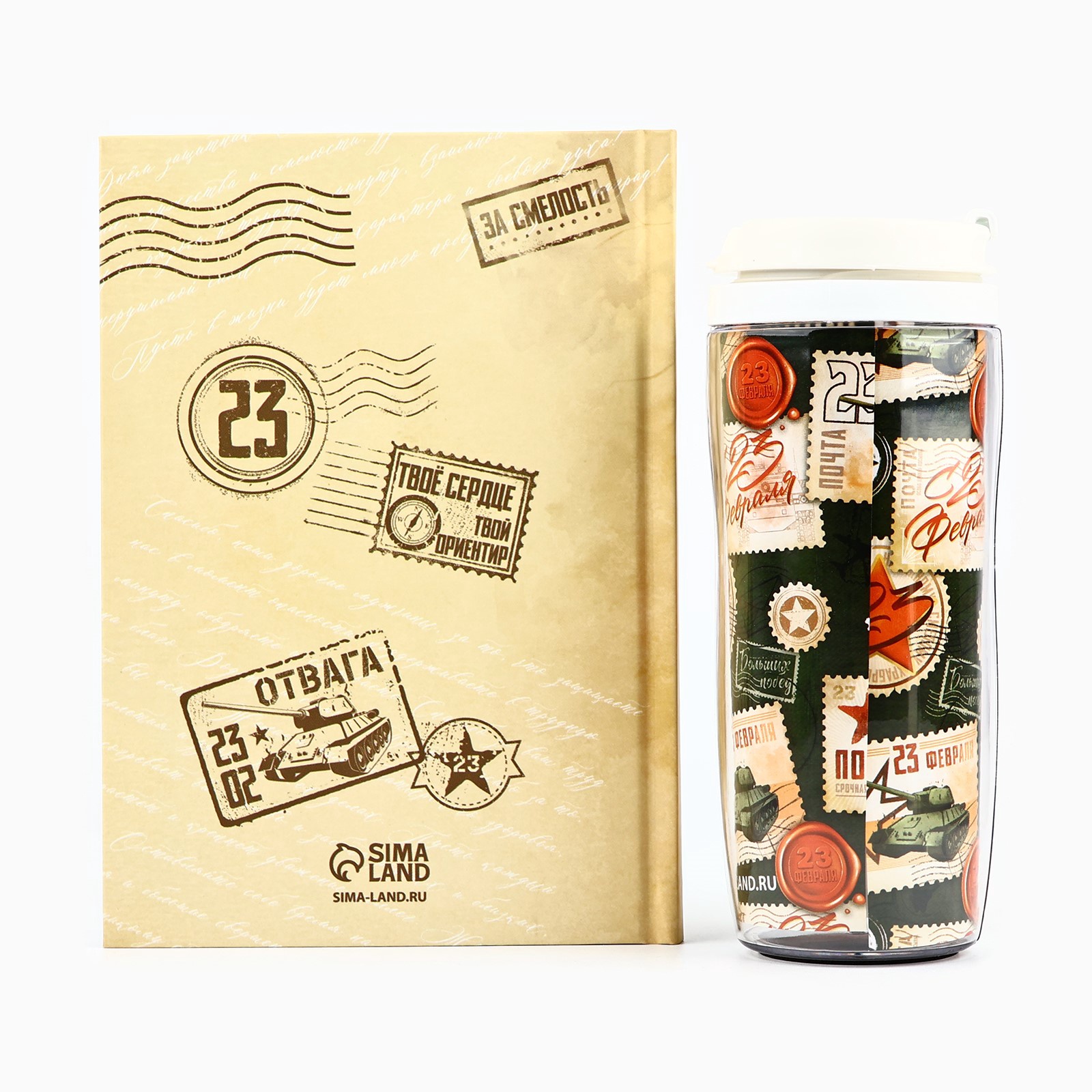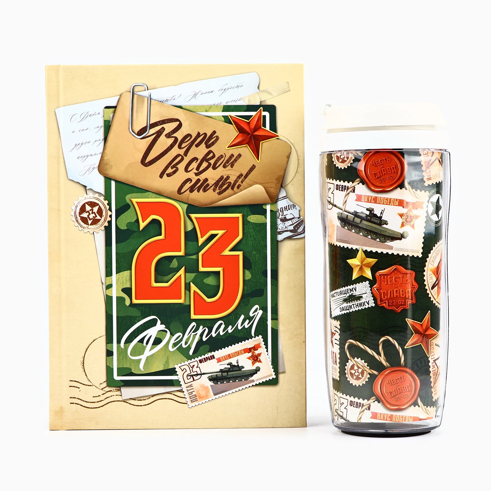 Подарочный набор «23 февраля», ежедневник в твердой обложке а5, 80 л, термостакан 350 мл