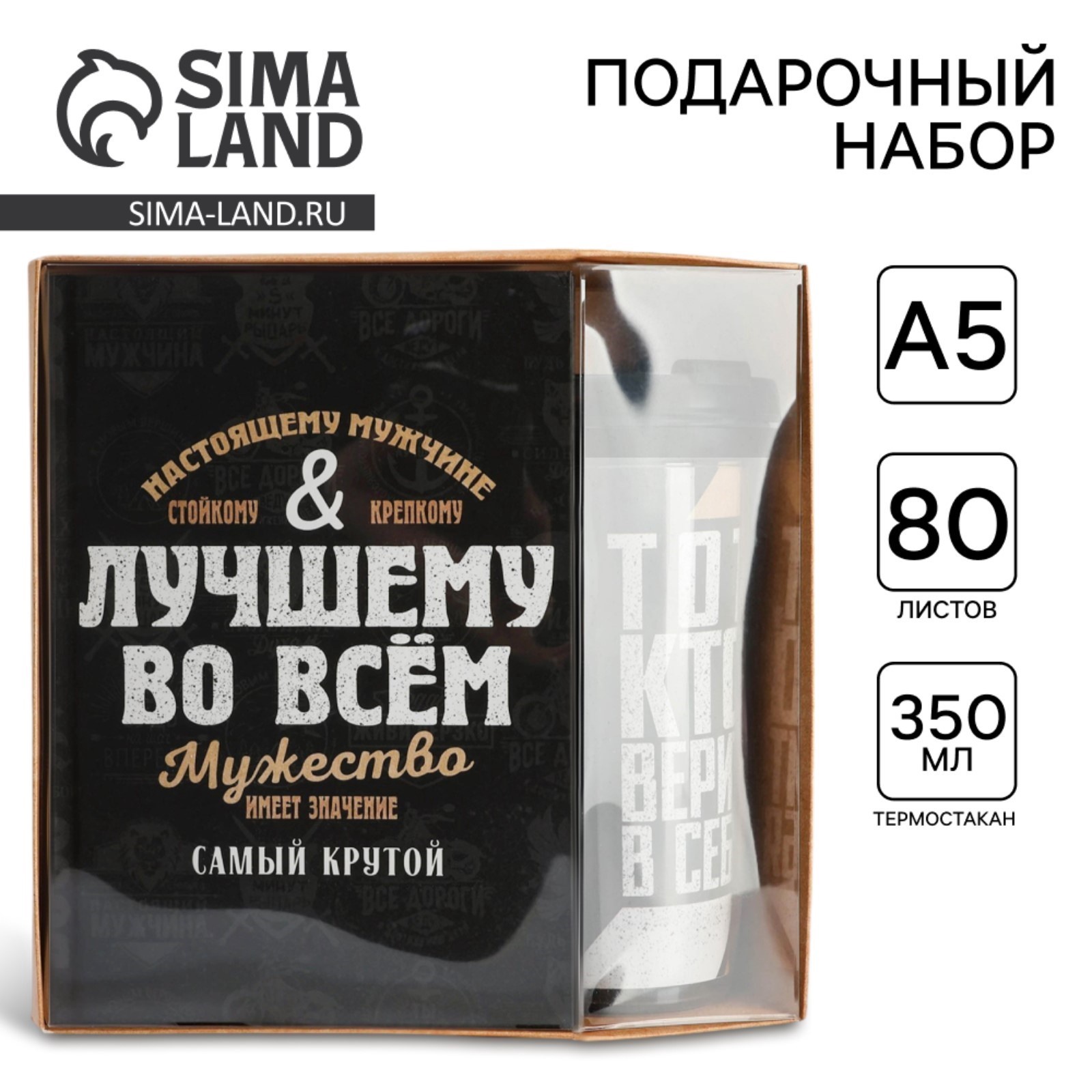 Подарочный набор: ежедневник в твердой обложке а5, 80 л., термостакан 350 мл «лучшему во всем»