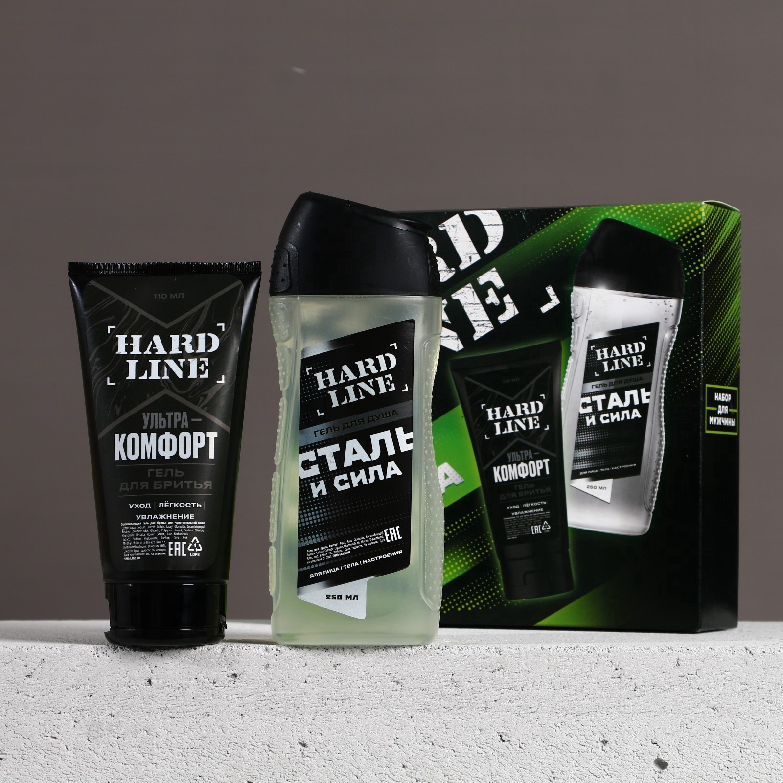Подарочный набор косметики «сталь и сила», гель для душа 250 мл и гель для бритья 110 мл, Hard Line
