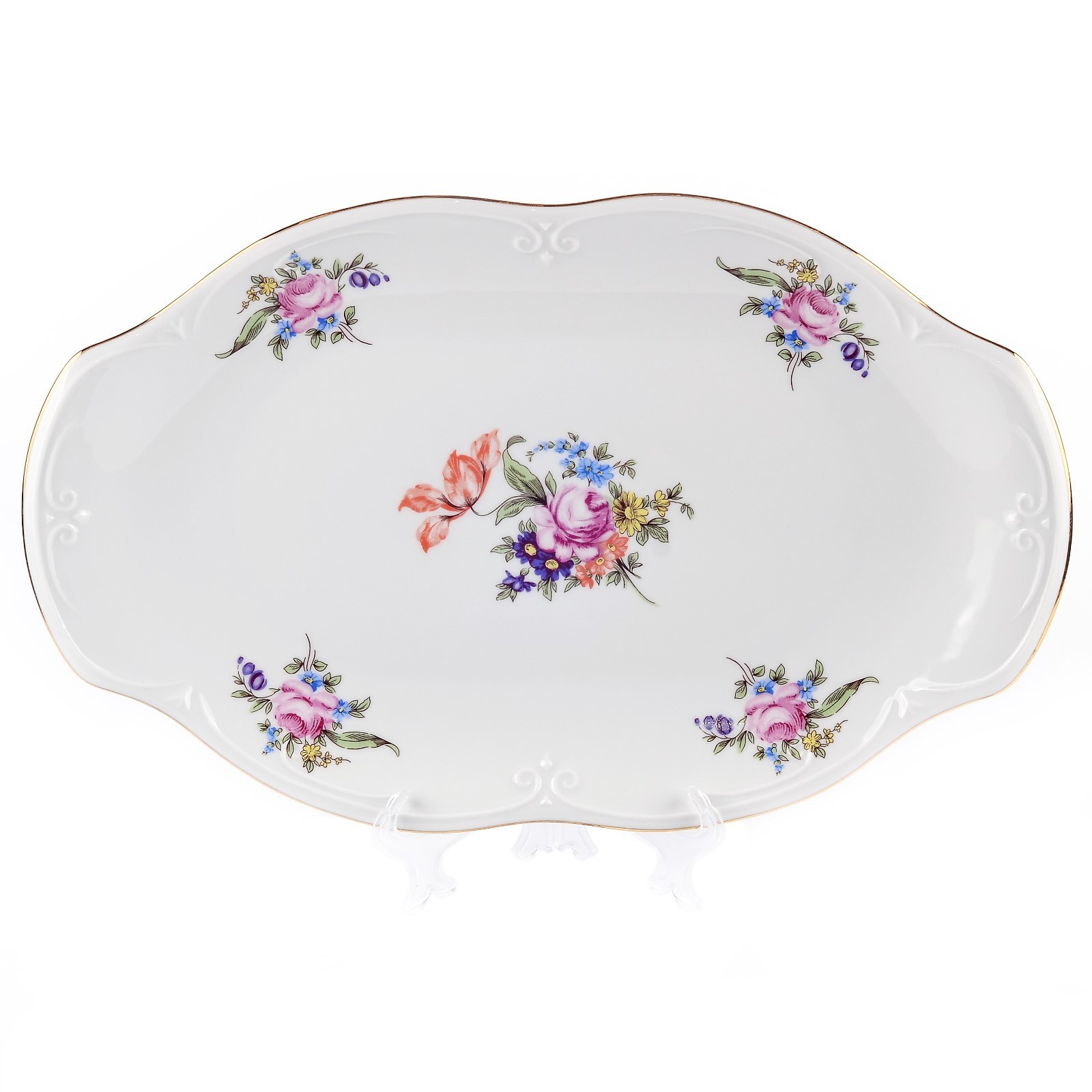 Блюдо овальное Cmielow Kamelia «мейсенский букет», длина 33 см