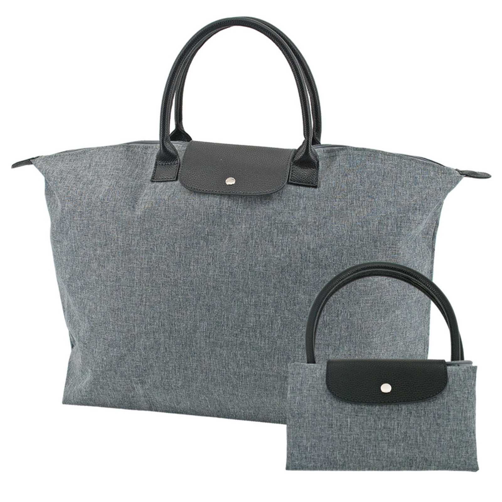 Сумка хозяйственная вх002-05311, цвет серый, текстиль со вставками из натуральной кожи, 58х17х32 см