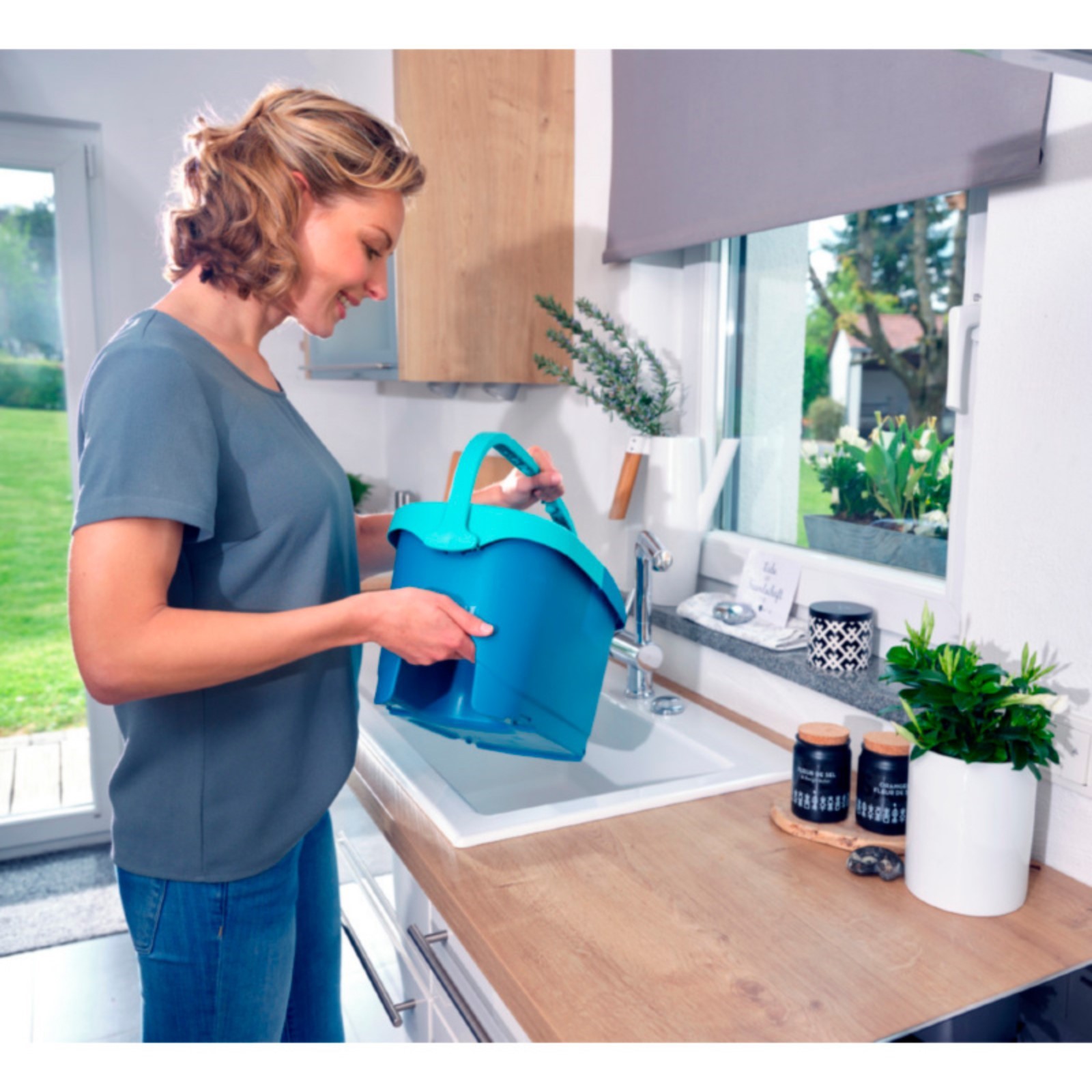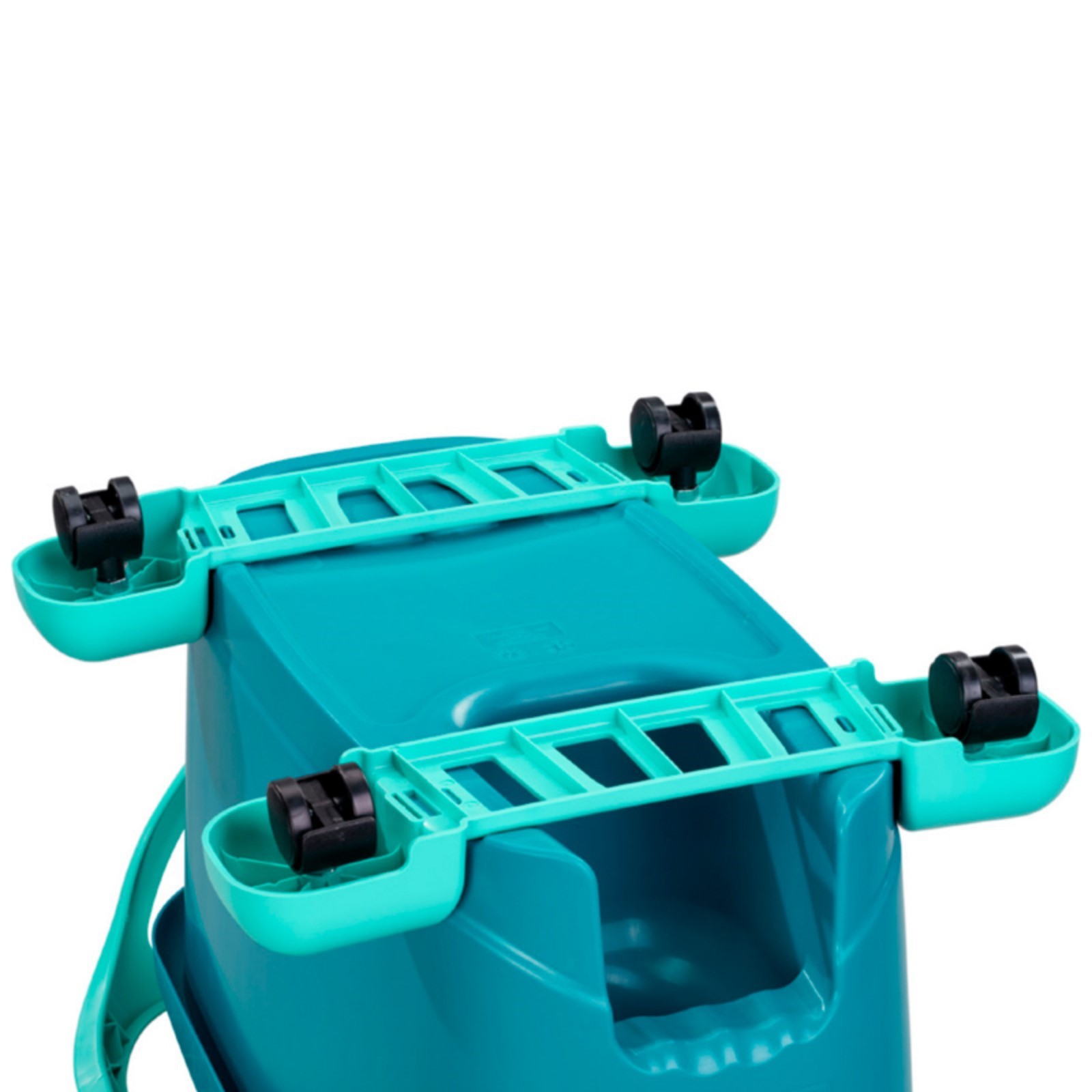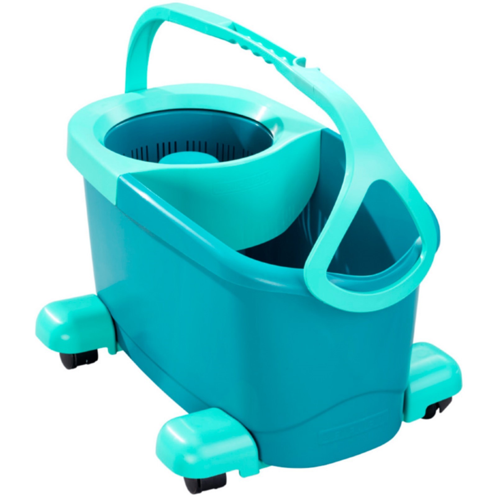 Набор для уборки leifheit clean twist швабра и ведро с отжимом на колесиках. Новая система от Leifheit Clean Twist Disc Mop Ergo Mobile идеально подходит тем, кто ищет полноценную систему для мытья полов. Комплект включает в себя все, что нужно для идеальной уборки. От швабры с телескопической ручкой и насадкой Micro Duo для мытья полов любого типа до ведра со встроенной системой центробежного отжима и тележки для комфортного перемещения ведра во время уборки. Вам больше не придется наклоняться или соприкасаться руками с водой для отжима насадки. Ручка швабры Clean Twist от Leifheit оснащена запатентованным механизмом вращения - вы сможете отжать насадку без особых усилий, самостоятельно выбирая степень сухости. Надежный шарнир в основании швабры вращается на все 360 градусов, позволяя проводить уборку волнистыми линиями. Без повреждений от влаги и песка, лишняя вода и грязь отжимаются на центрифугеИдеальная система для удаления сильных загрязнений с любых видов половВедро с системой отжима для лёгкой очистки грязной воды без рукОптимальное регулирование остаточной влагиПростая уборка под мебельюРукоятка швабры оснащена системой Click совместима с другими аксессуарами системыВ комплекте эргономичное ведро ёмкостью 20 лУдивительно легкая передача усилия вращения, без ножного отжиманияУтопленная рукоятка и широкая ручка с носиком для быстрого и чистого опорожнения ведраНасадка Micro Duo подходит для тщательной уборки всех типов половУдобство работы благодаря регулируемой по высоте телескопической рукояткеТележка с колесами вращающимися на 360 для удобной транспортировки Цвет: Бирюзовый Объём, л: 6 Материал: Пластик Вид: С насадкой МОП Педальный отжим: Нет Наличие колёс: Да С дозатором: Нет Слив: Нет  развернуть описание ▼