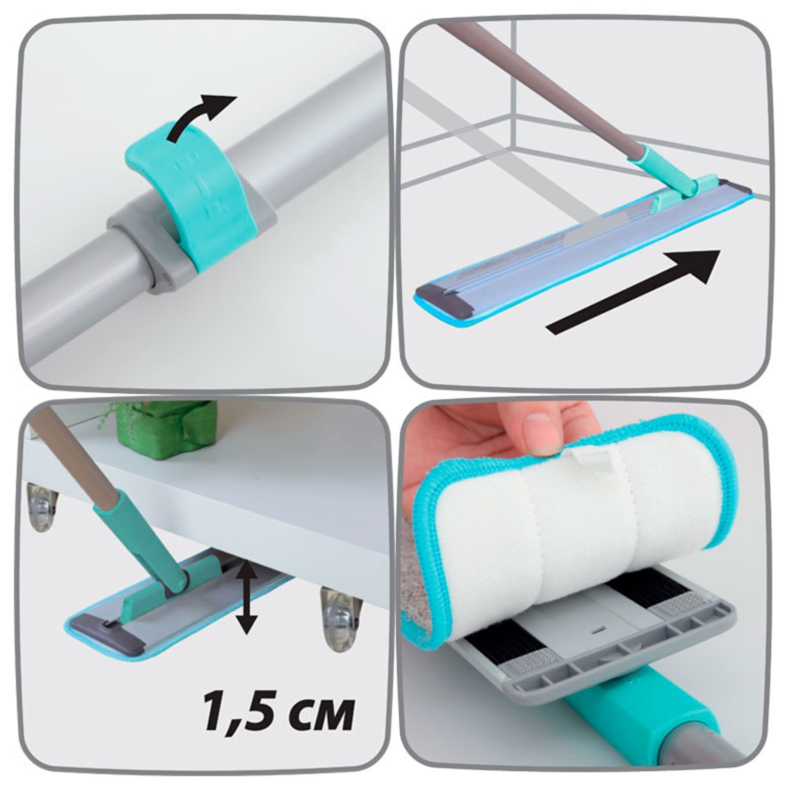 Швабра hausmann cosmic home с телескопической ручкой. Швабра для влажной и сухой уборки с уникальным механизмом передвижения ручки по платформе для уборки в труднодоступных местах. Идеальная геометрия платформы и конструктивные особенности швабры обеспечивают превосходное прилегание к поверхности пола, что позволяет качественно удалять грязь с любых напольных покрытий. Цвет: Бирюзовый Ручка телескопическая: Да Отжим: Нет Материал рукоятки: Пластик Вид: Плоская Длина ручки, см: 87 - 137 Материал насадки: Микрофибра Способ отжима: Без отжима Тип насадки: Плоская  развернуть описание ▼
