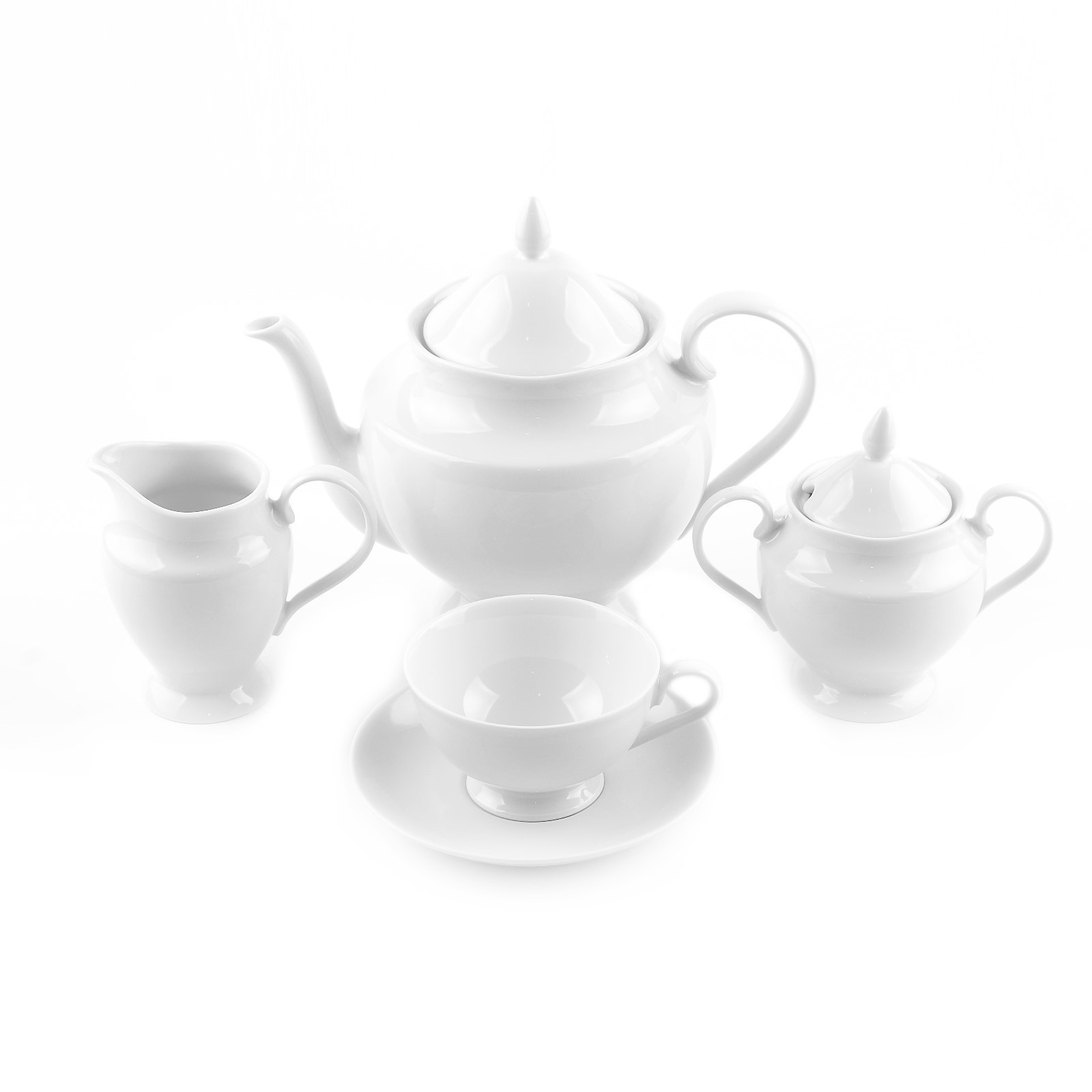Чайный сервиз cmielow astra, 15 предметов. Посуда изготовлена из фарфора польского производителя Cmielow. При правильной эксплуатации обладает долговечностью, не тускнеет, отличается стойким блеском. Можно использовать в микроволновой печи и посудомоечной машине. Цвет: Белый Количество персон: 6 Объём, мл: 14 В наборе, шт.: 15 Тематика: Однотонная Материал: Фарфор Наличие подставки: Нет Можно мыть в посудомоечной машине: Да Можно использовать в СВЧ-печи: Да Текстура: Гладкая Тип: Чайный сервиз Особенности: Без особенностей Матовая поверхность: Нет Серия: Астра Без декора Серия: Cmielow Астра Без декора  развернуть описание ▼