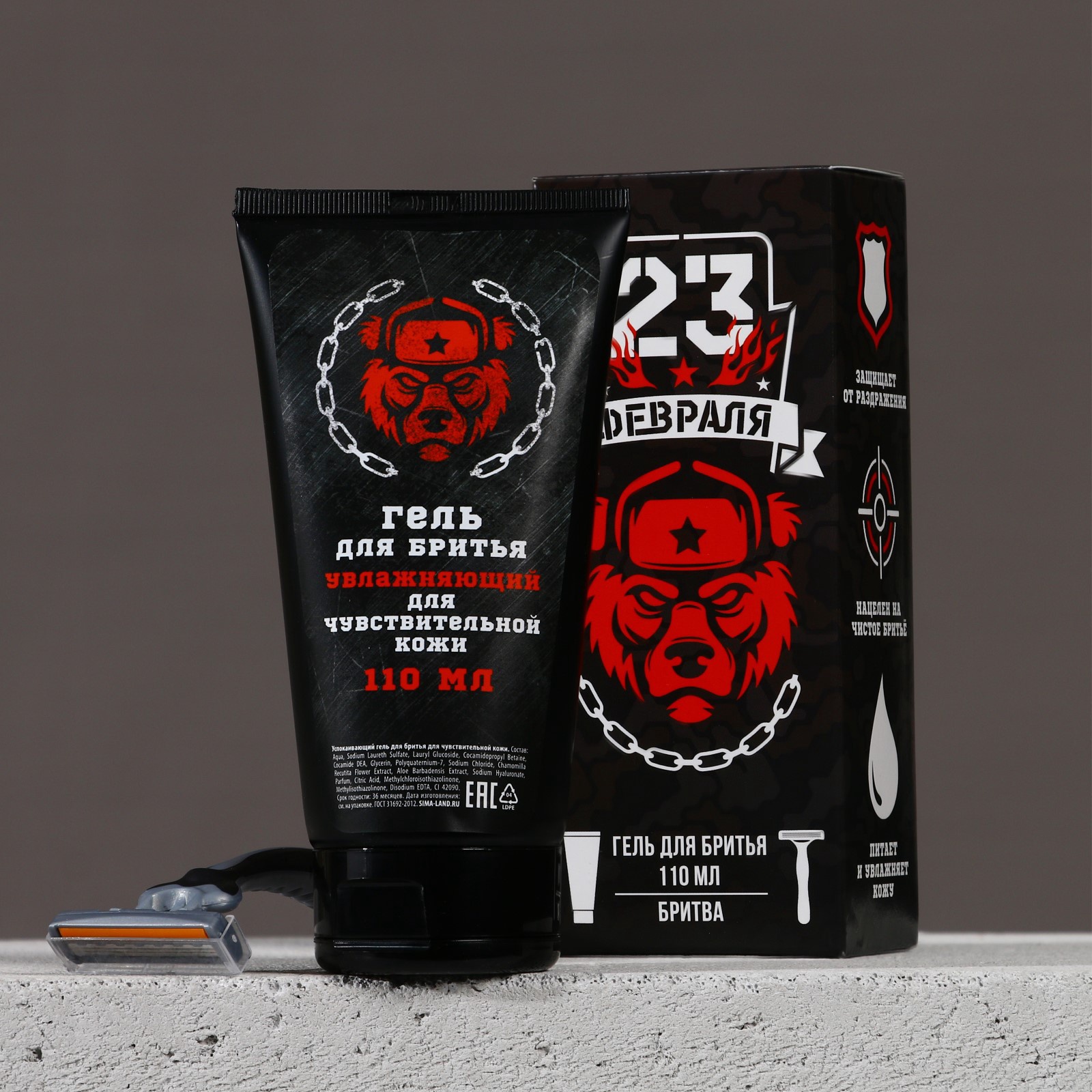 Подарочный набор «23 февраля»: гель для бритья 110 мл и бритва, Hard Line