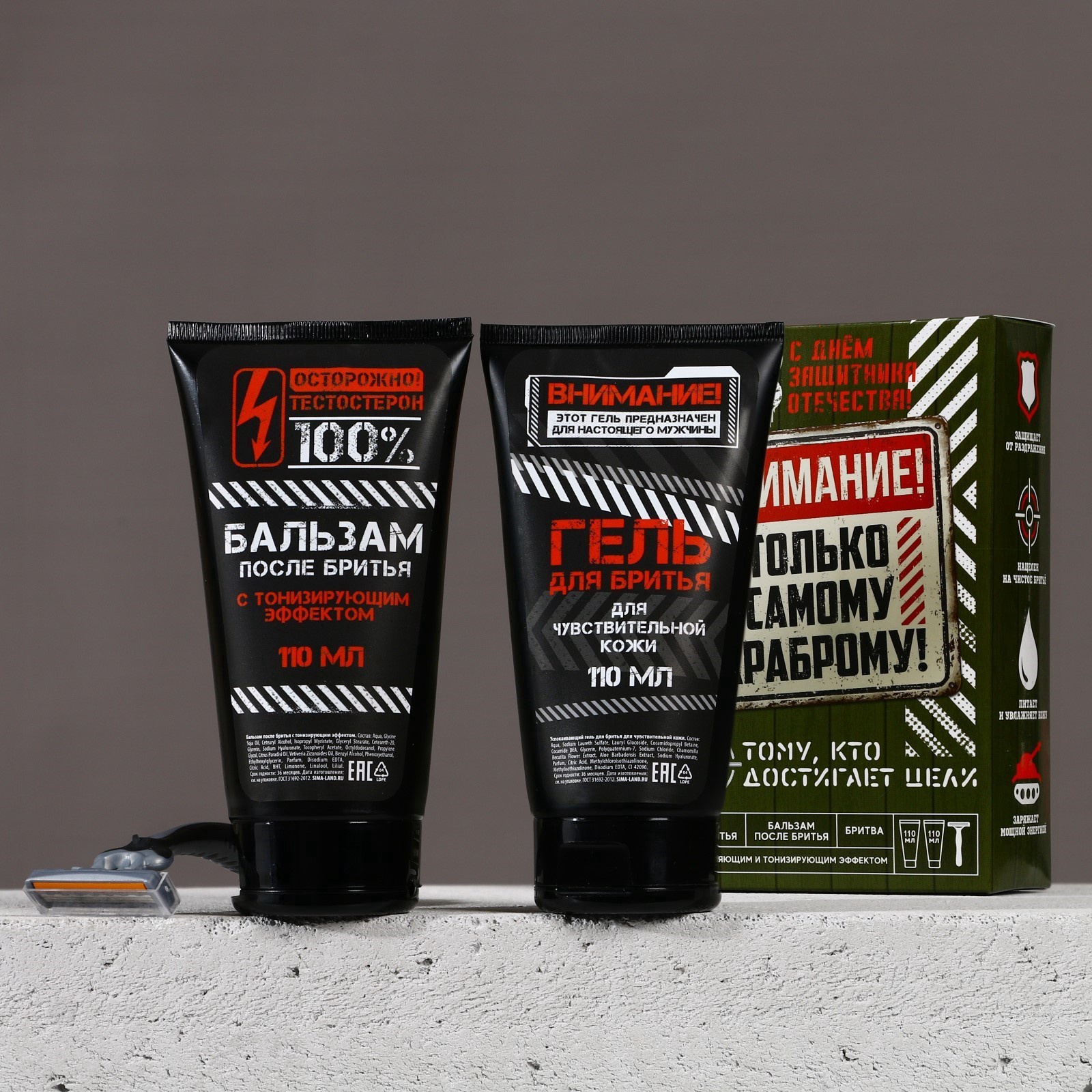 Подарочный набор «самому храброму», гель для бритья и бальзам после бритья 2 110 мл, бритва, Hard Line