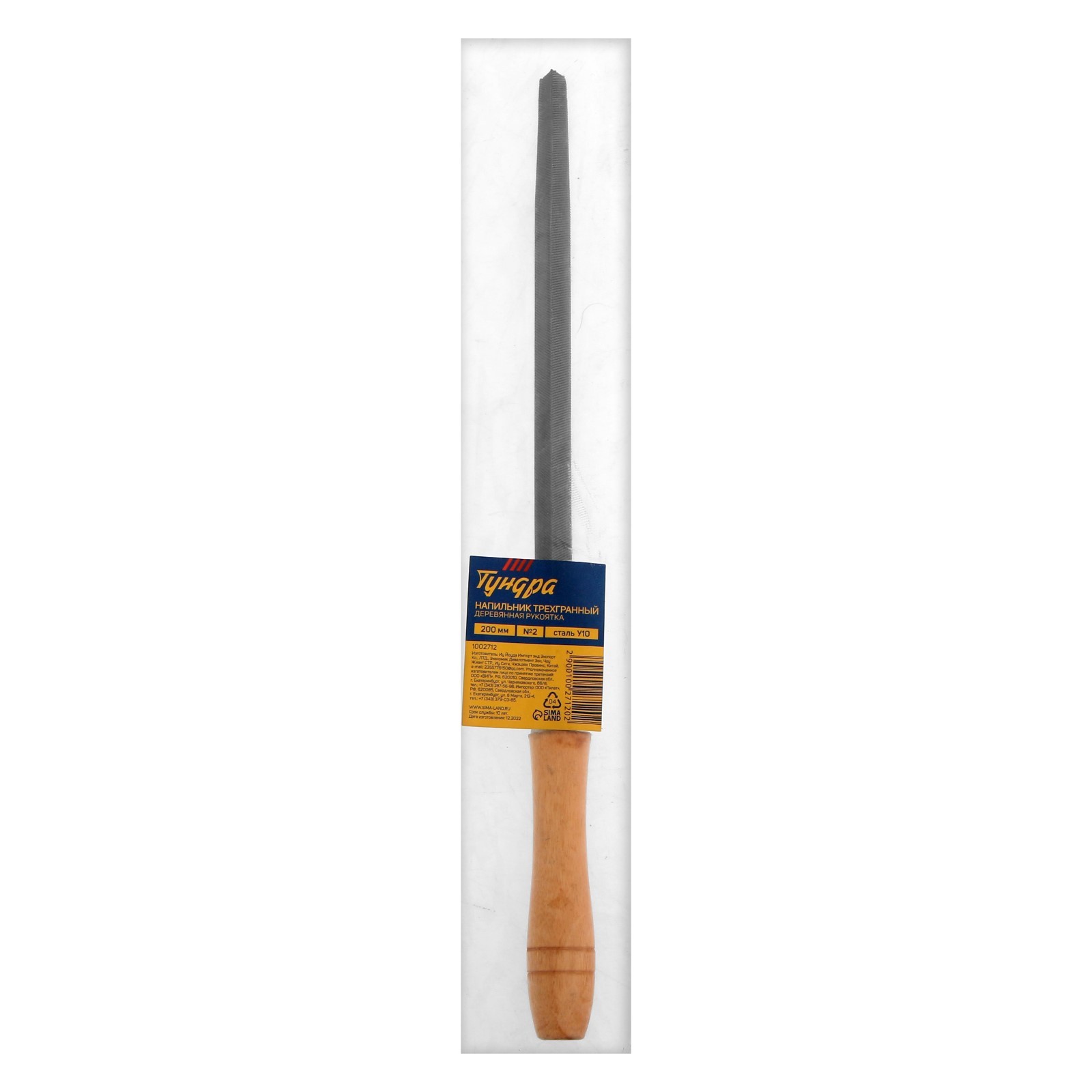 Напильник тундра, трехгранный, сталь у10, деревянная рукоятка, №2, 200 мм