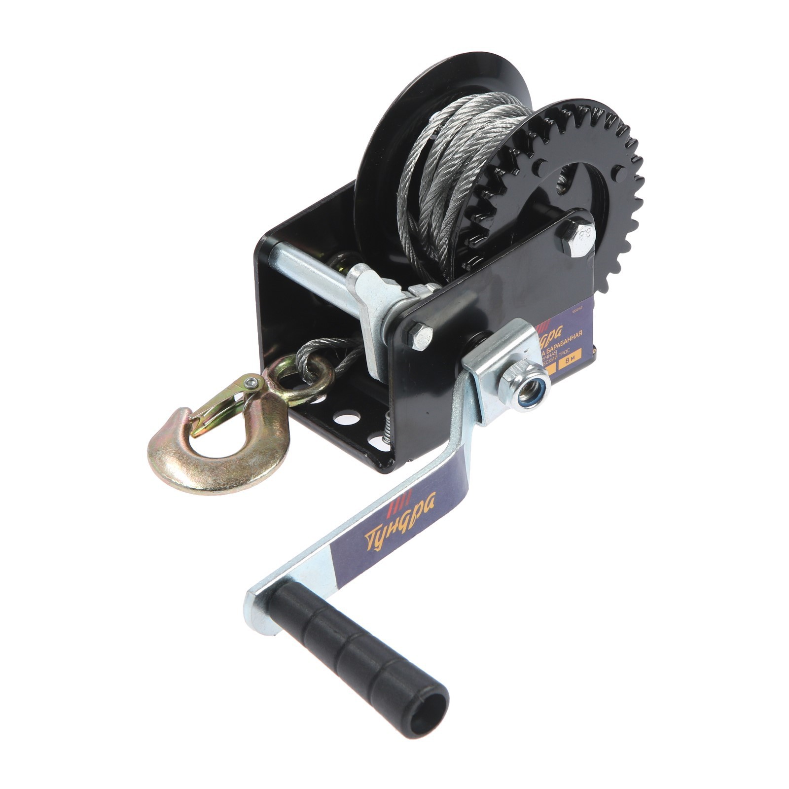 Лебедка ручная барабанная тяговая тундра, 800 кг, металлический трос 8 метров. Барабанная лебёдка проста в эксплуатации: её конструкция, в основе которой барабан, крепится к прочному горизонтальному упору, а трос — к грузу. Вращая ручку, вы можете подтянуть необходимый объект. Предназначена для горизонтального перемещения грузов. Длина троса, м:8|Тяговое усилие, кг:800|Вид троса:Металлический трос|Вид лебёдки:Барабанная|Особенность лебёдки:Тросовая|Страна:Китай  развернуть описание ▼