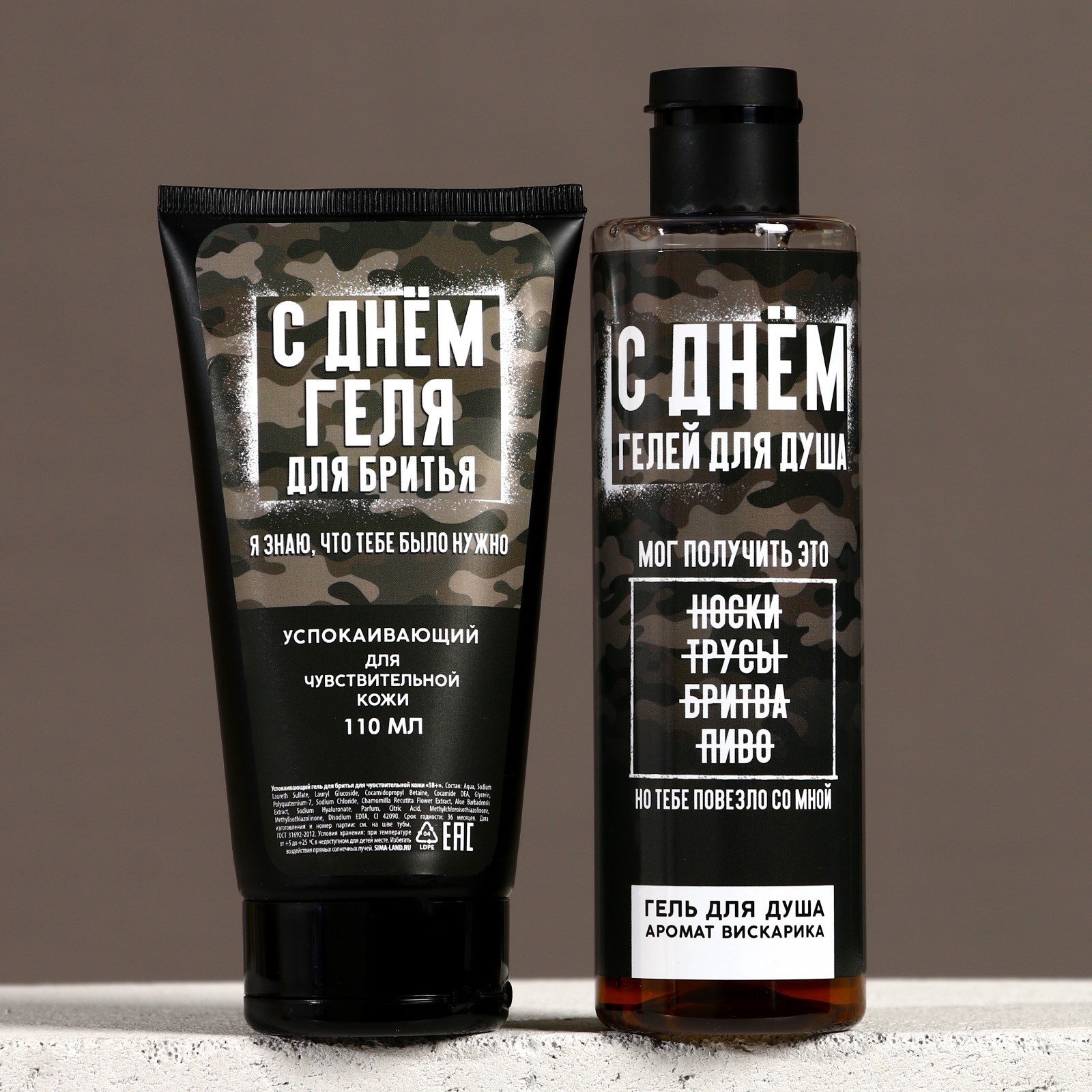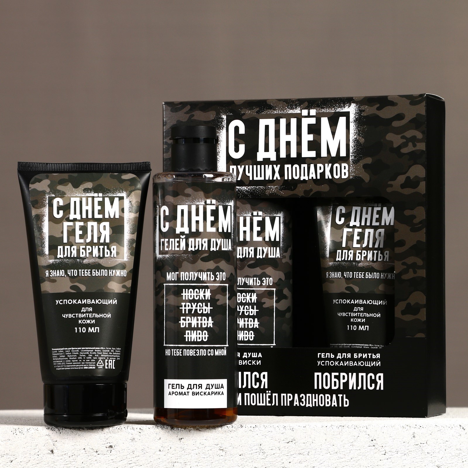 Набор:Да|Цвет:Прозрачный|Для кого:Для мужчины|В наборе, шт.:2|Объём, мл:110|Объём, мл:250|Вид упаковки:Картонная упаковка|Тематика праздника:Универсальная тематика|Адресат:Без адресата|Возраст:Взрослый|Аромат:Виски|Применение:Для бритья|Составляющие набора:Гель для душа|Составляющие набора:Гель для бритья|Темпер. ограничение НЕ НИЖЕ :+5|Темпер. ограничение НЕ ВЫШЕ :+25|Возраст:Для взрослых|Тип кожи:Чувствительная|Назначение:Очищение, детокс|Назначение:Увлажнение|Форма выпуска:Флакон без дозатора|Страна:Россия