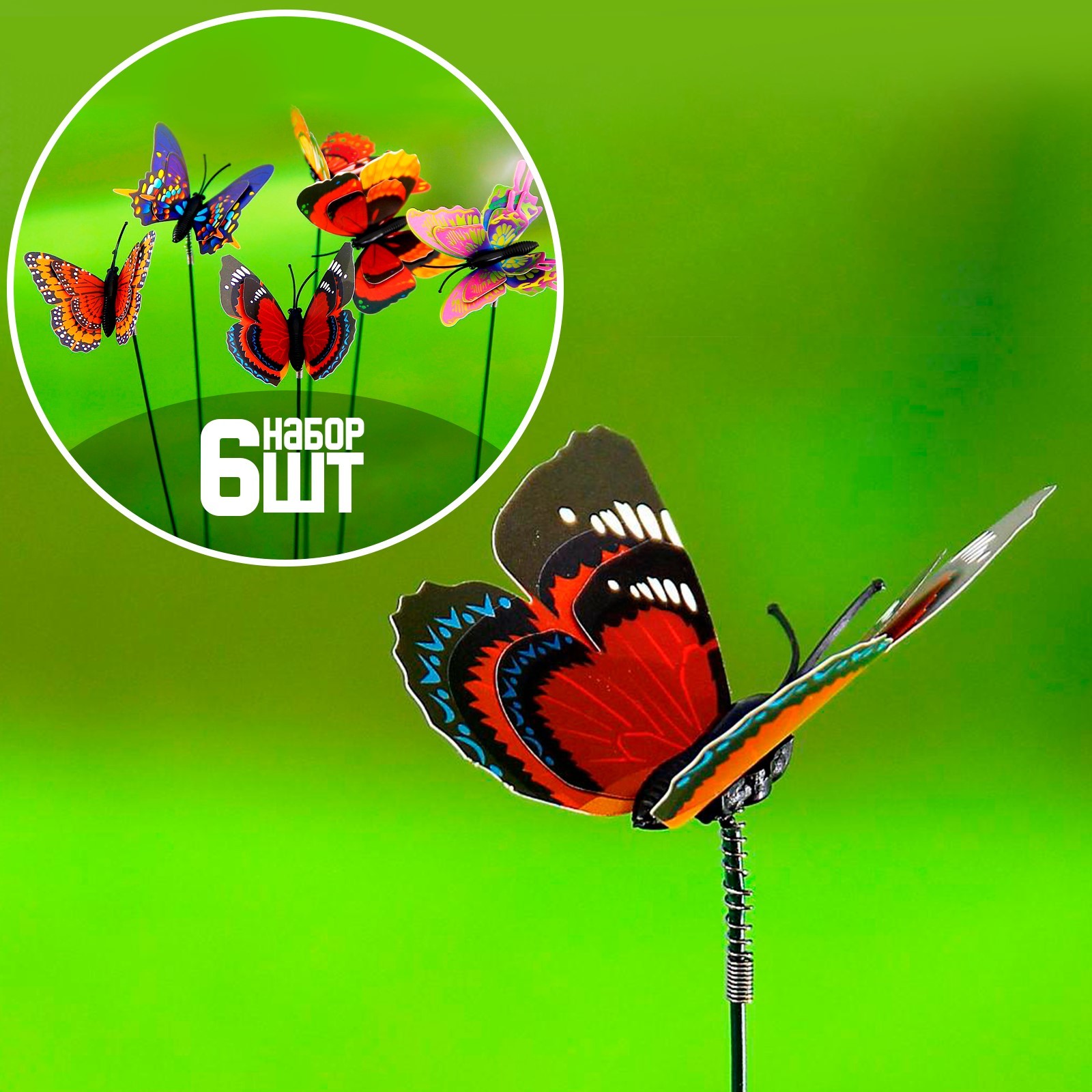 Штекер «бабочка дельфиус», 25 см, набор 6 шт., микс