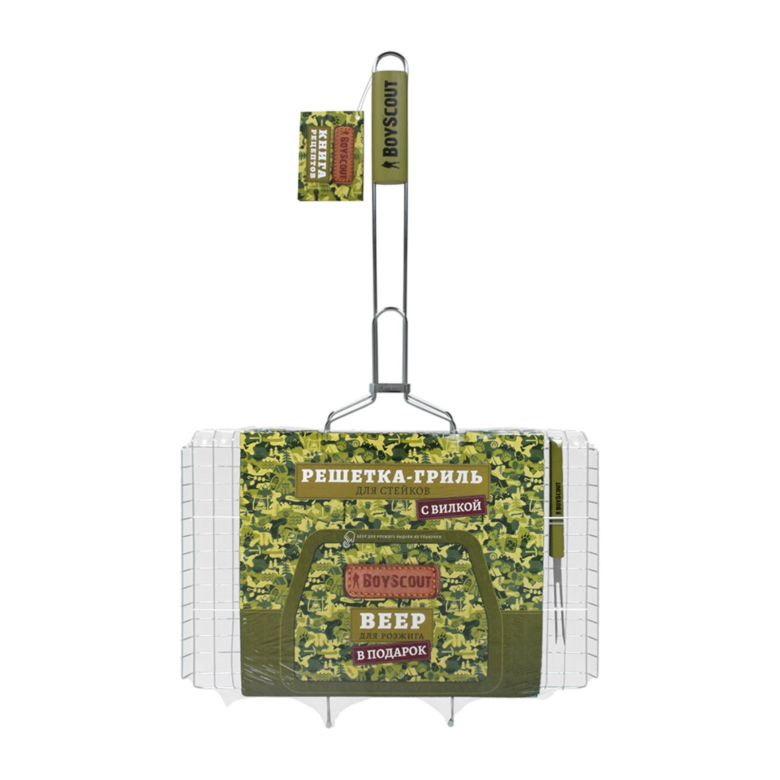 Решётка-гриль Boyscout, для стейков, большая с вилкой, веер в подарок, 70(+5)x45x27x2 Cм