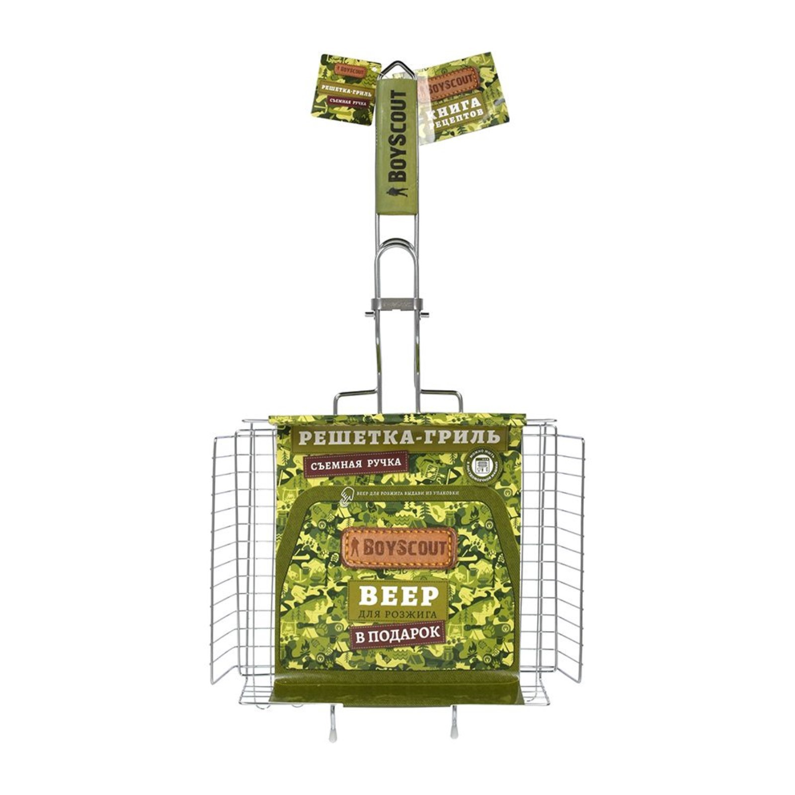 Решётка-гриль Boyscout, универсальная со съемной ручкой, веер в подарок, 58(+5)x30x25x5,5 Cм