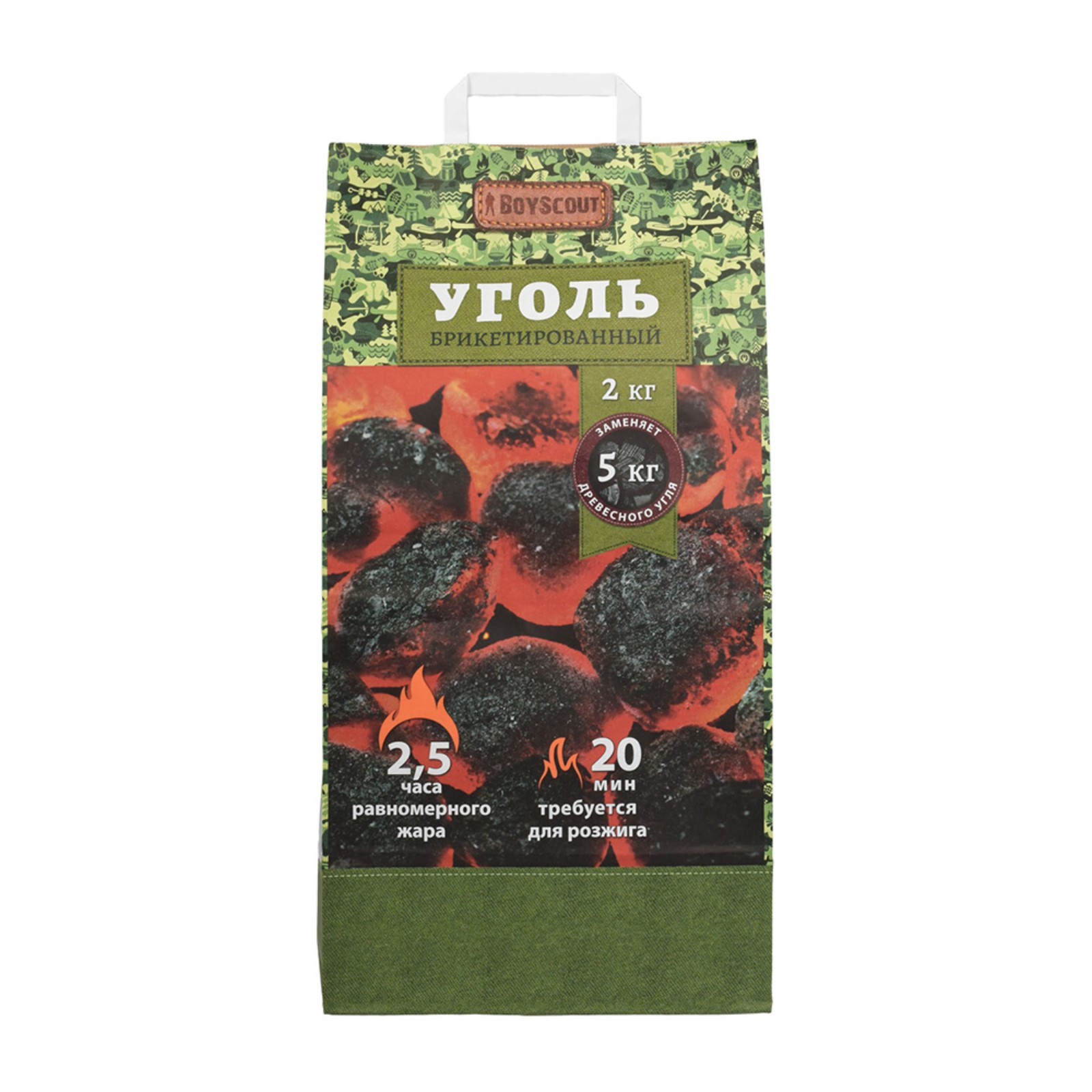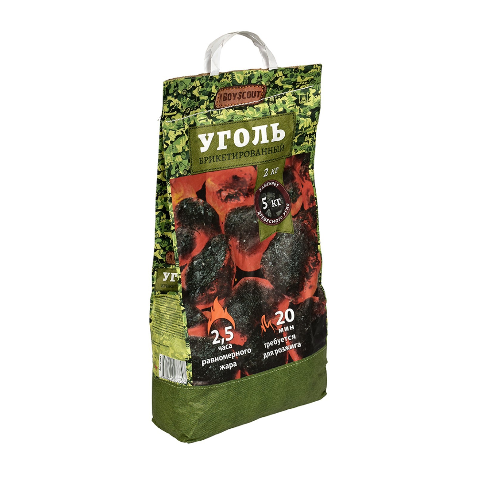 Уголь брикетированный boyscout, 2 кг. Брикетированный уголь длительного горения. Для использования в мангалах, грилях и барбекю. Вес, г/Объём, мл: 2000 Вид: Уголь  развернуть описание ▼