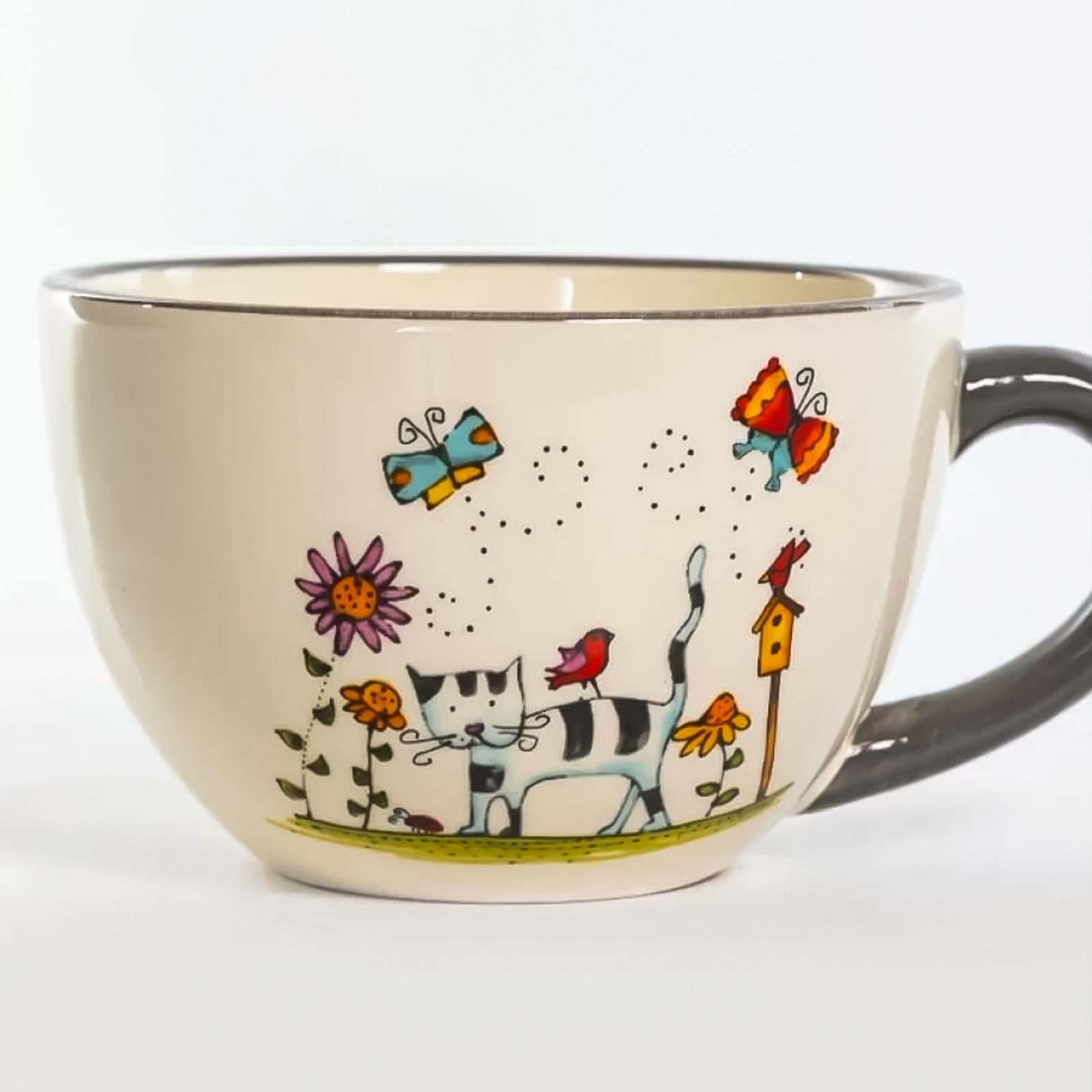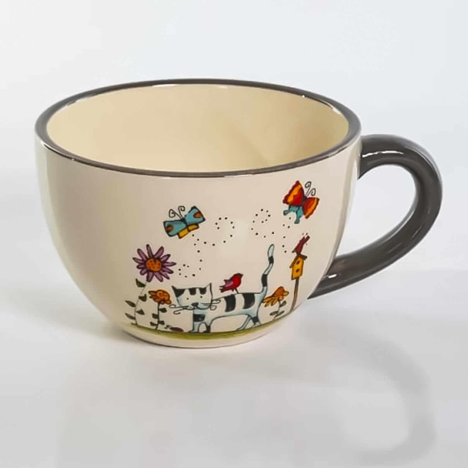 Бульонница elrington «полосатый кот», с ручкой, 580 мл. Бульонница - посуда для порционной подачи бульона, супа, других первых блюд, альтернатива суповой тарелке, но более глубокая и дополнена ручкой. Помимо основного назначения, бульонницы используют для подачи горячих закусок и вторых блюд. В них можно готовить холодец или десерты с желе и муссы. Изделие может иметь следующие несущественные дефекты:незначительный скол краски;прерывание и наплыв рисунка;наличие полосы на рисунке;потёртости и наплыв золотой краски на внутренней стороне;небольшие потёртости и царапины на глазури;засорения под глазурью;плотные вздутия глазури на внутренней поверхности;натёк глазури;наличие мушек (чёрных точек);неровность внутреннего отверстия;отклеивание страз;потёртость упаковки в уголках. Данные недостатки не влияют на свойства изделия при использовании. Цвет: Серый Цвет: Белый Форма: Круглая Объём, мл: 580 tnved: 6911100000 Тематика: Животный мир Материал: Керамика (Доломит) Можно мыть в посудомоечной машине: Нет Можно использовать в СВЧ-печи: Нет Текстура: Гладкая Особенности: Без особенностей Форма: Круг, шар, цилиндр  развернуть описание ▼