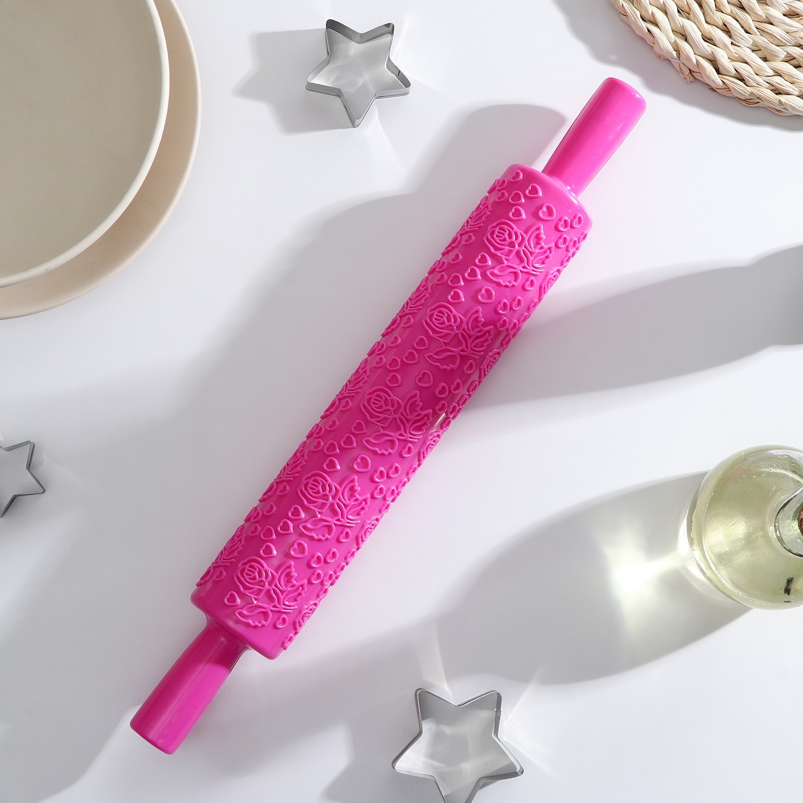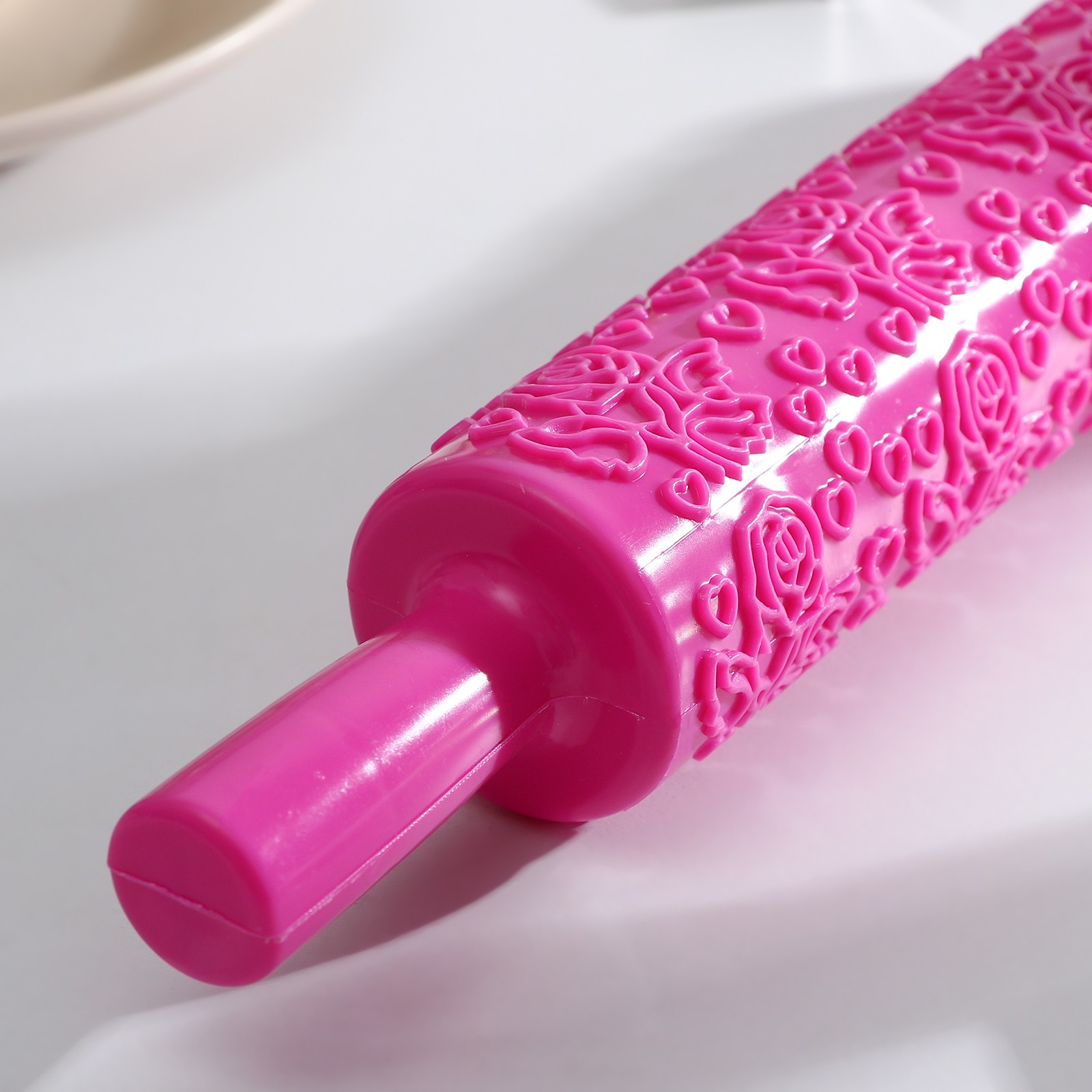 Скалка кондитерская «розарий», 39 см, рабочая часть 25 см, фактурная, цвет розовый