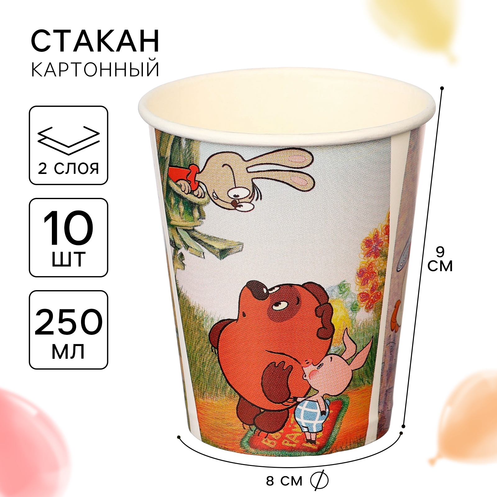 Стакан бумажный "с днем рождения!", 250 мл, союзмультфильм
