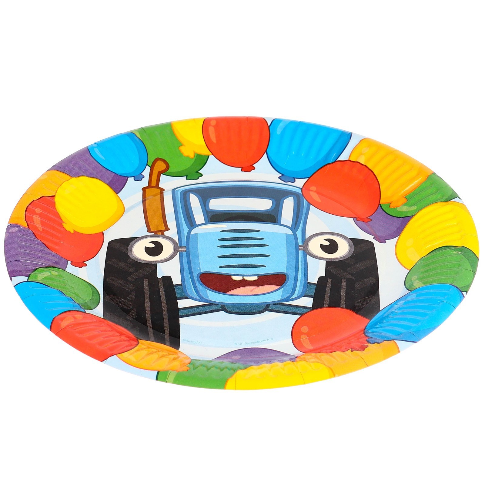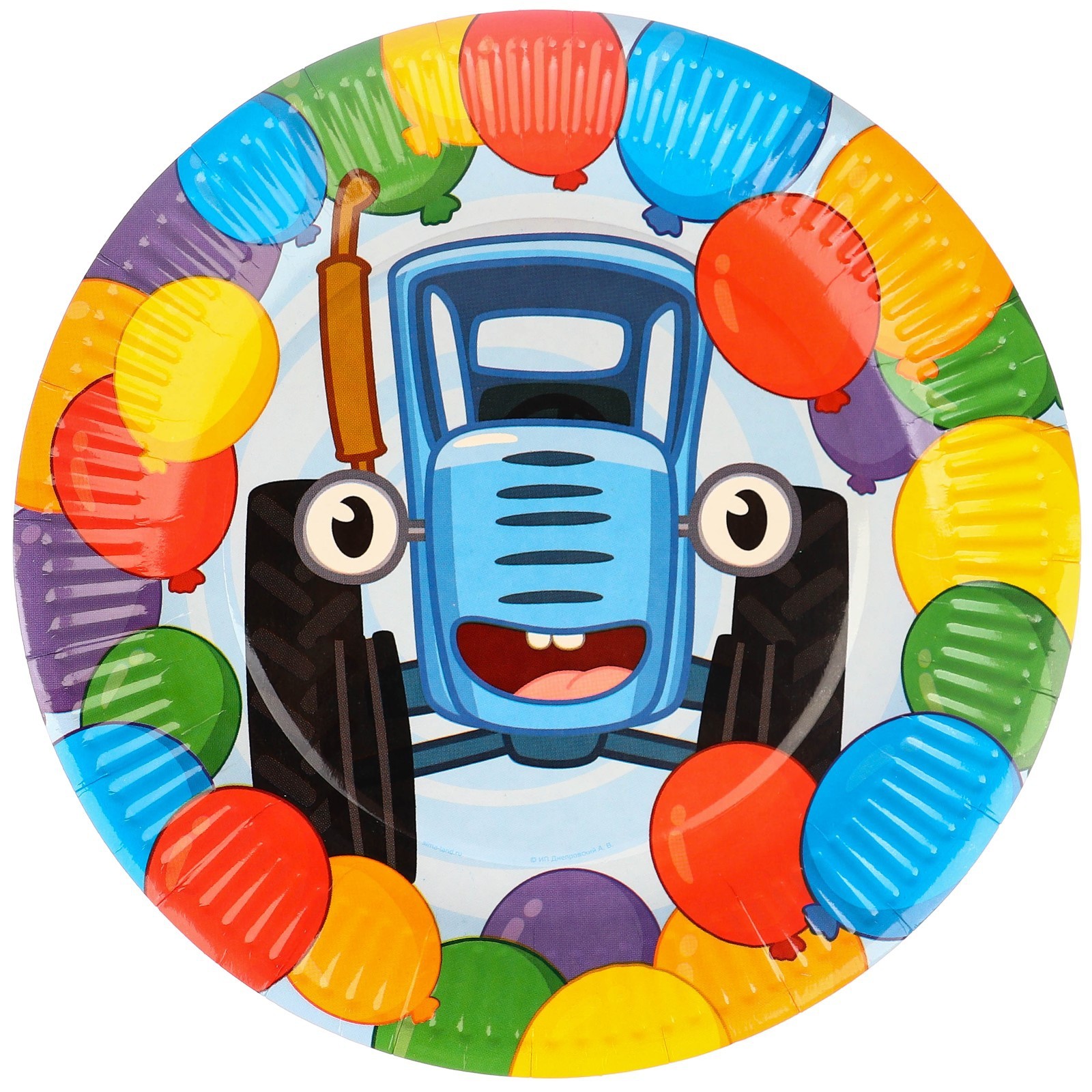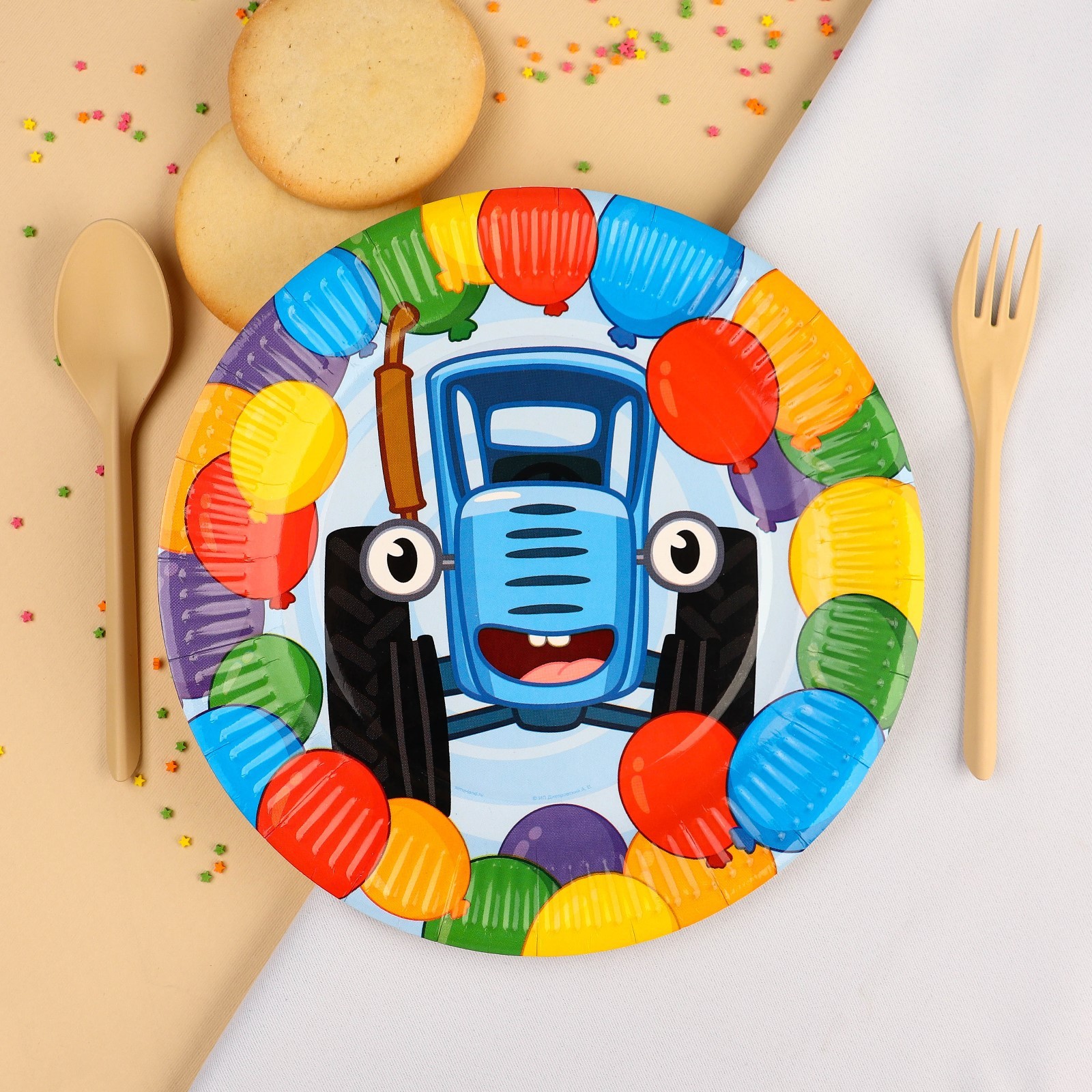 Тарелка бумажная "с днем рождения!", 23 см, синий трактор