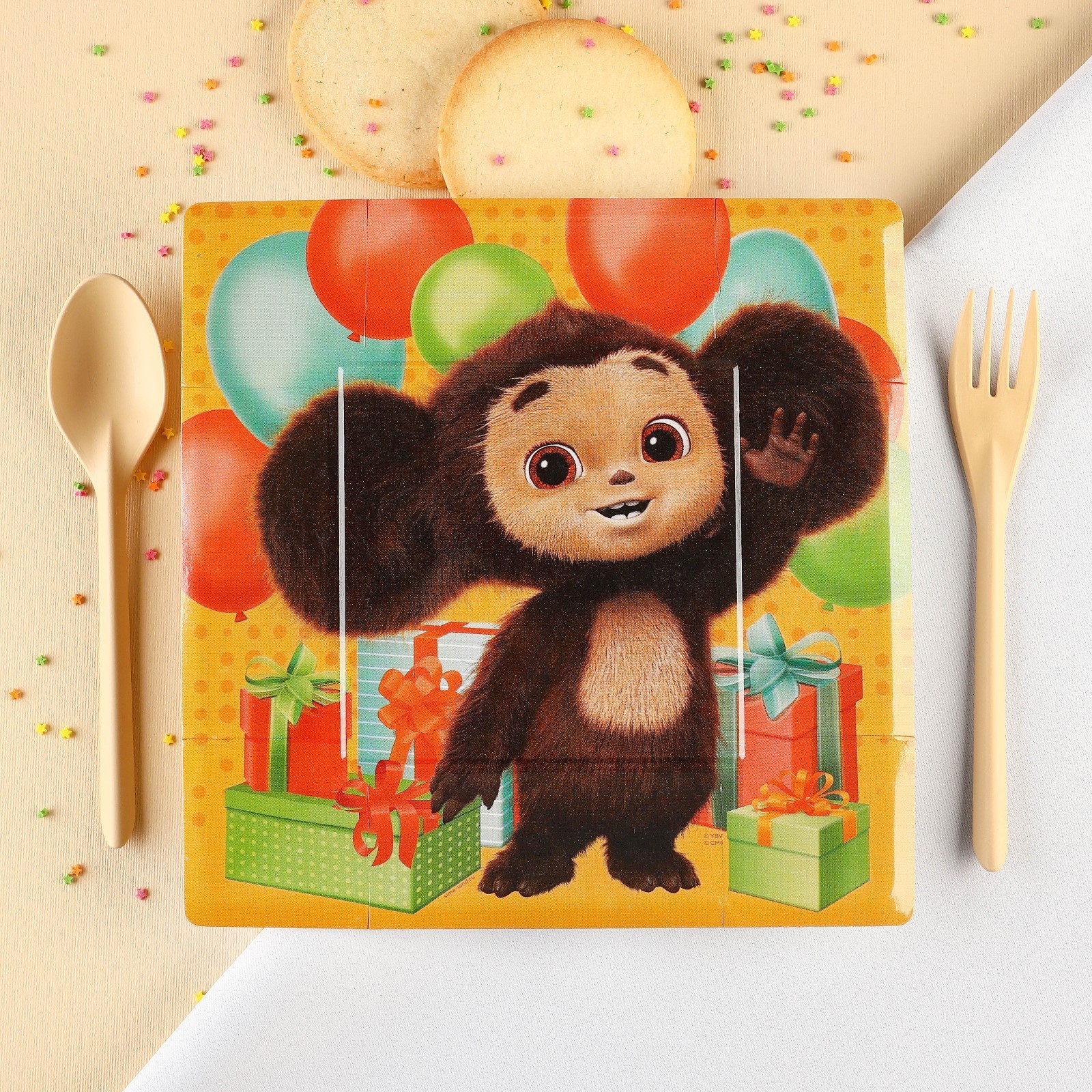 Тарелка бумажная "с днем рождения!", 21 см, чебурашка